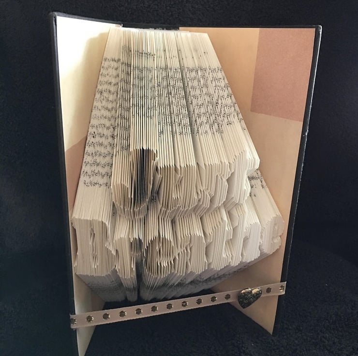 This listing is for a book folding pattern that enables you to create a book with the design pictured. A free written tutorial is included to guide you through the folding process.
