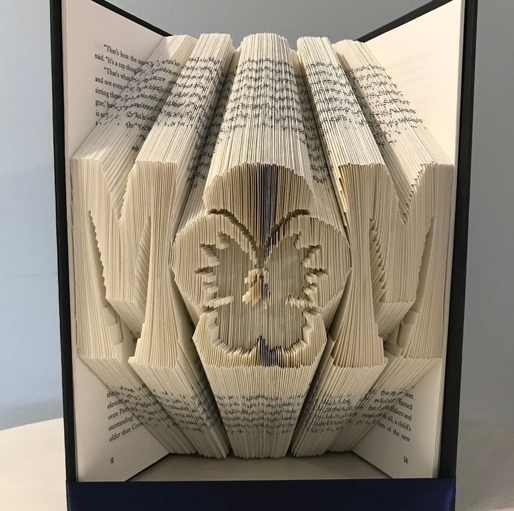 This listing is for a book folding pattern that enables you to create a book with the design pictured. A free written tutorial is included to guide you through the folding process.