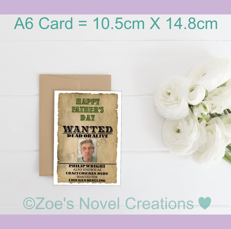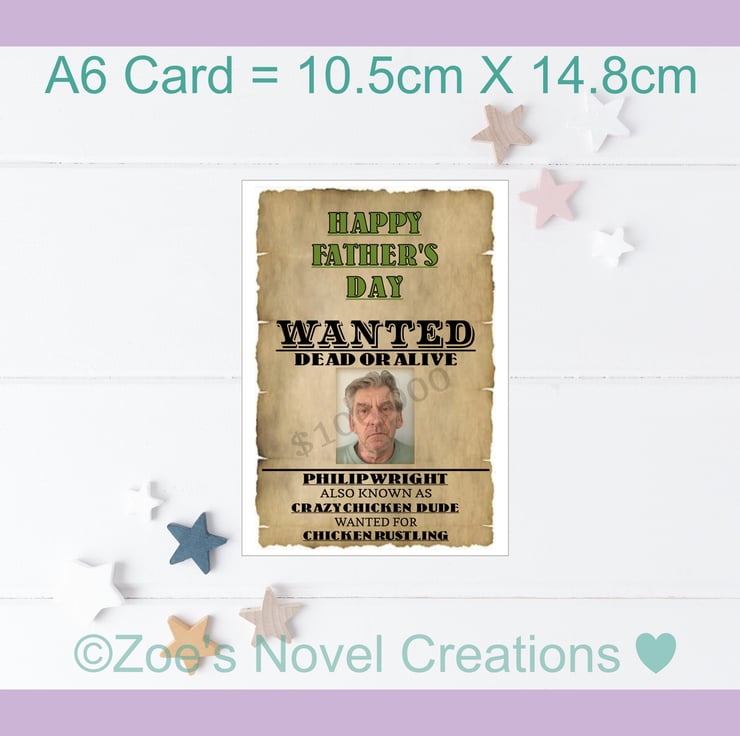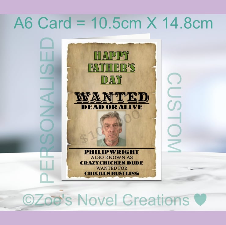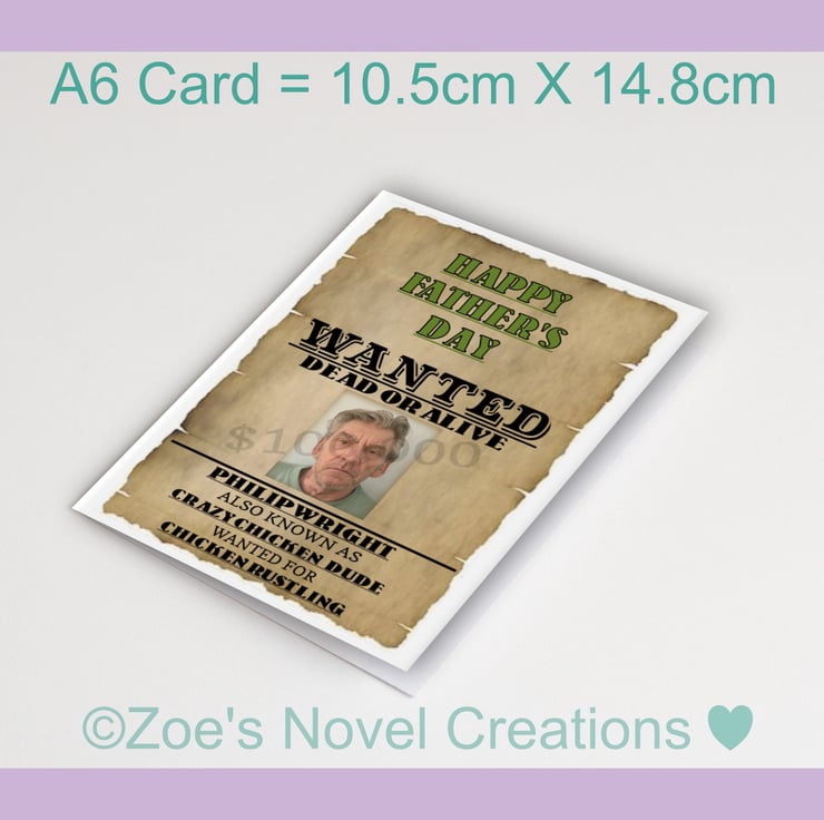 Please give the recipients FULL name, the AKA name & the reason for being wanted. EG- Bill Smith, Billy the Kid, Cattle rusting. You will also need to send me your photo via email If you don't have a photo, I will use the bandit image shown in photo 3.