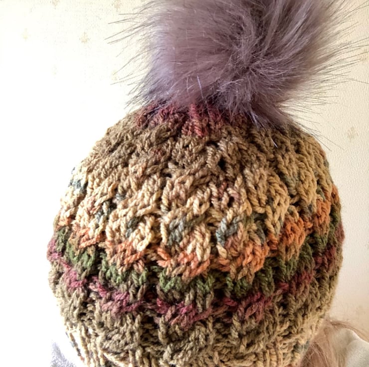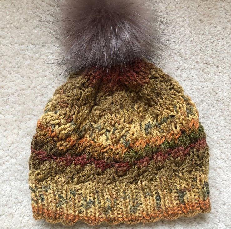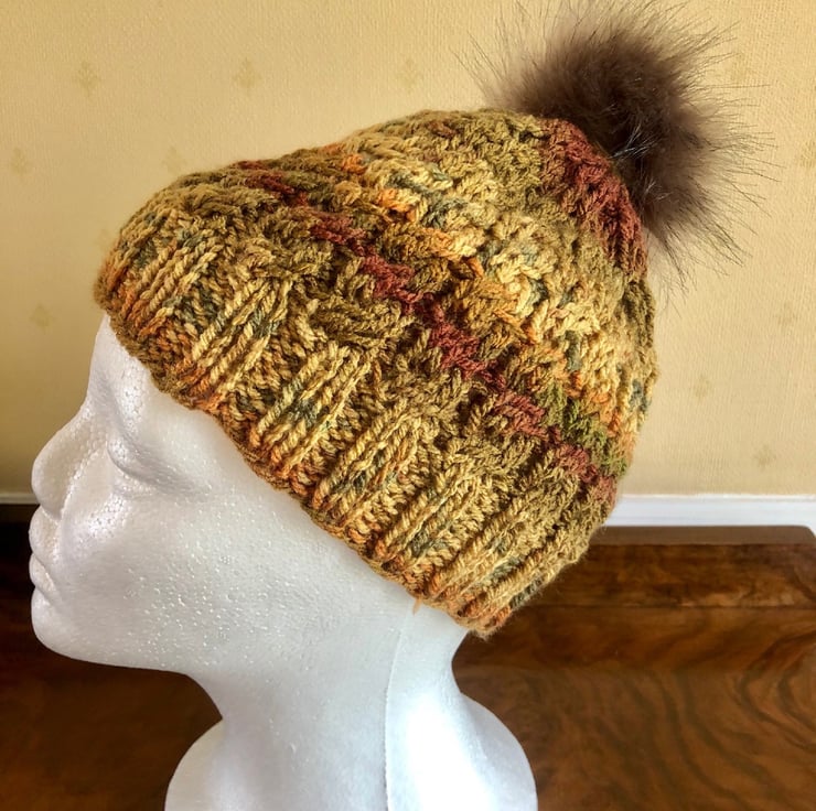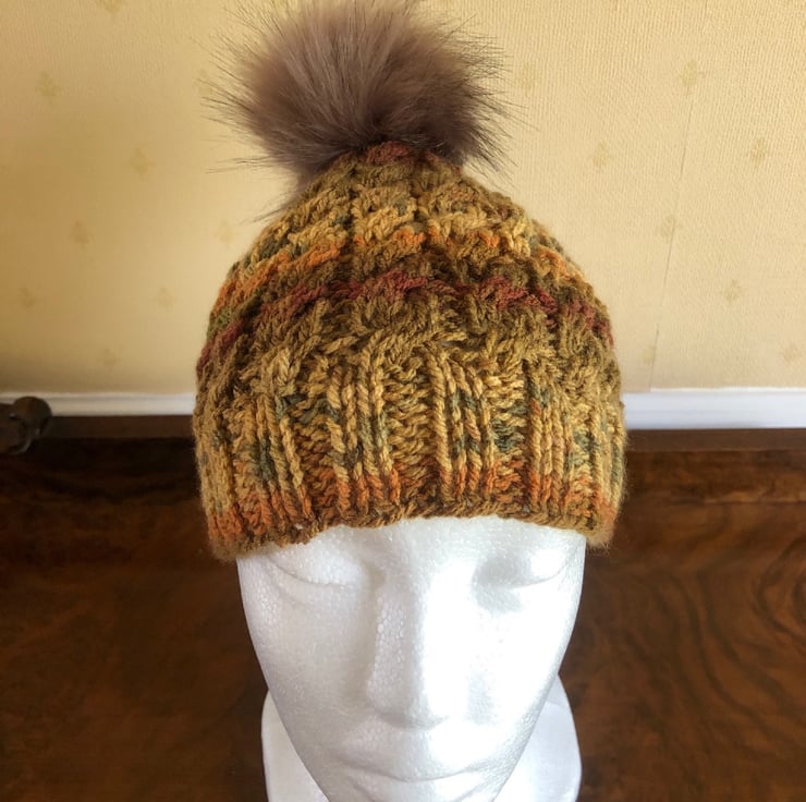Cabled, Hand Knitted Hat 2 with removable pom pom (Aran) - Medium
