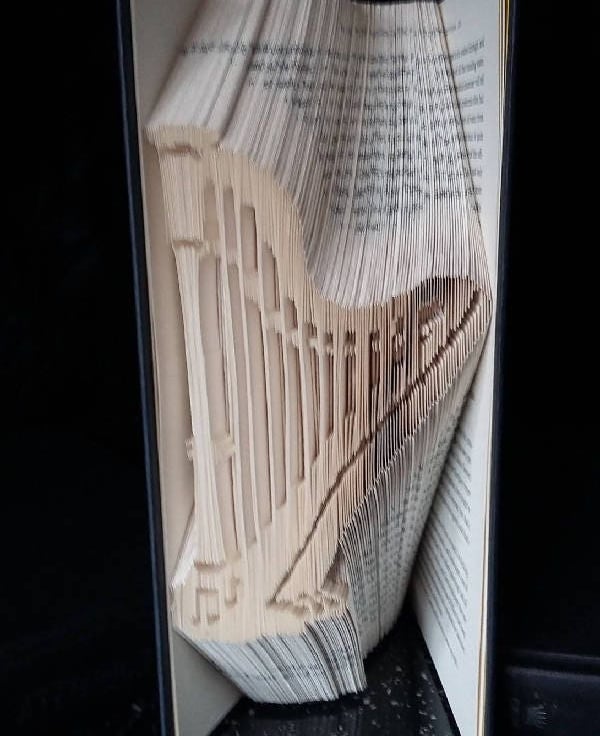This listing is for a book folding pattern that enables you to create a book with the design pictured. A free written tutorial is included to guide you through the folding process.