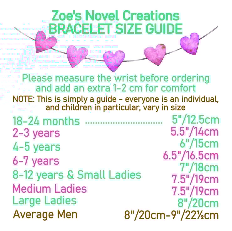 Please measure the wrist, and refer to the size guide in the photos to help you choose your size. Please remember that everyone is different, so if you are buying for a child, the age may not always match the wrist size due to the build of the child.
