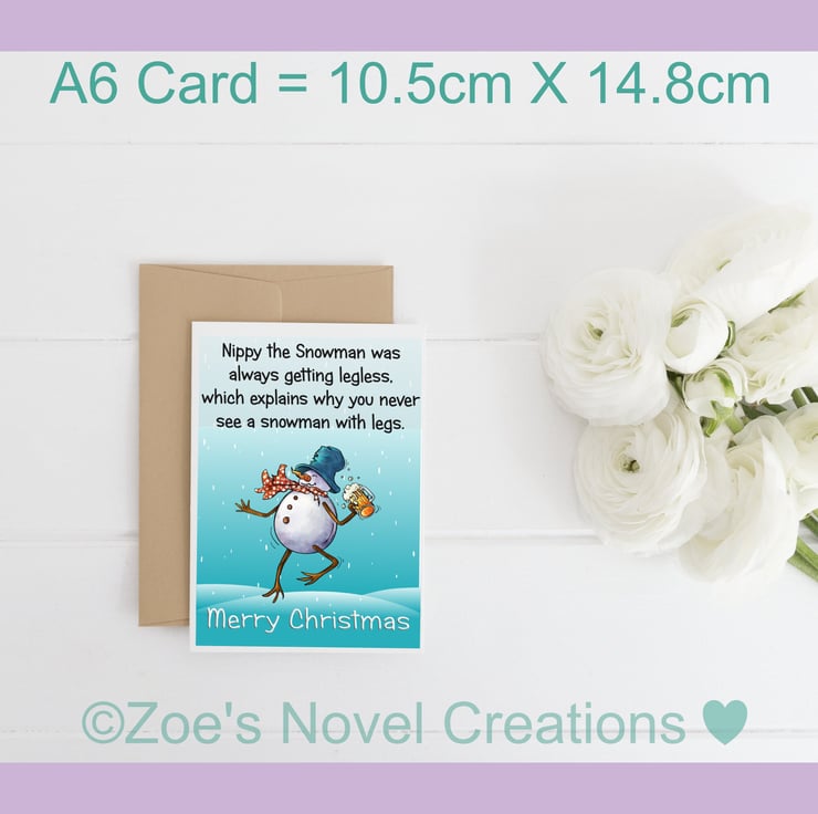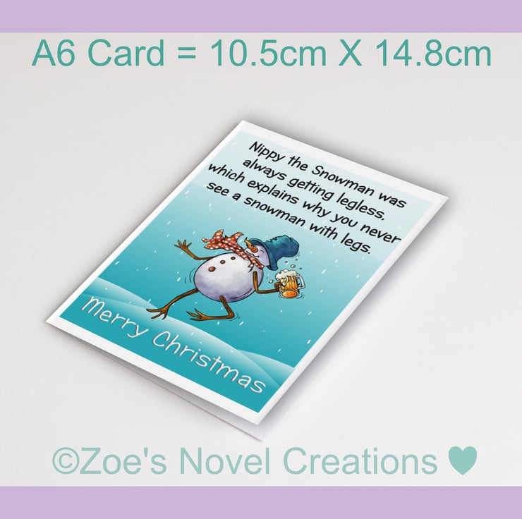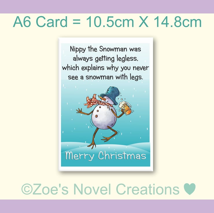 Legless Snowman, Christmas Card, A6 10.5cm x 14.8cm
