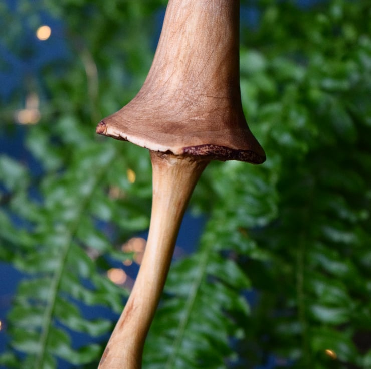 Parts of the mushroom have been coated with a solution of bicarbonate of soda, which helps bring out the natural colouring in the wood. It has then been treated with a coating of linseed oil to cure the wood.