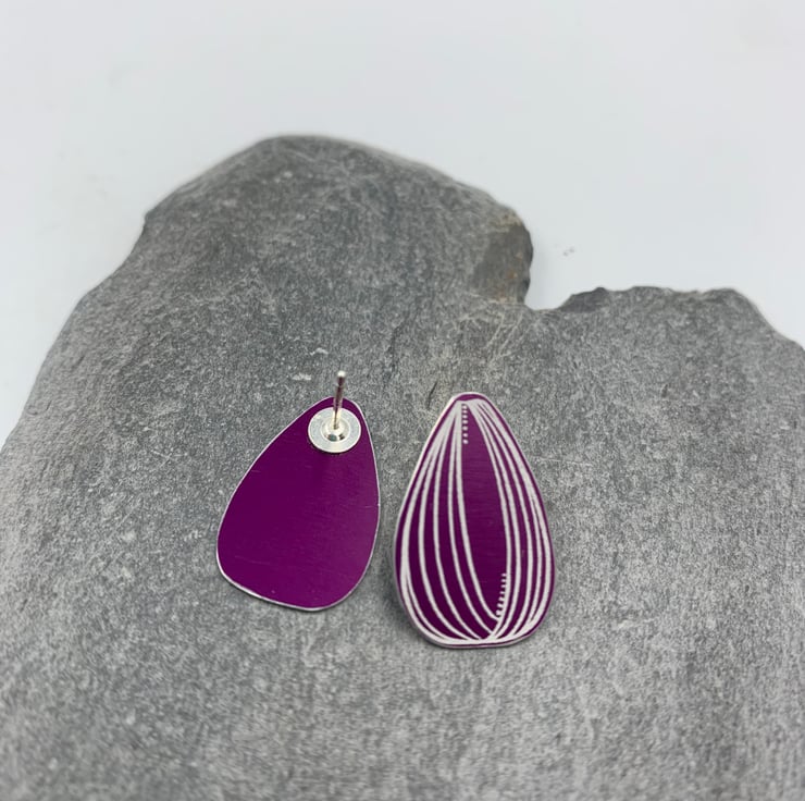 These stunning earrings feature a delicate, stylised tulip design laser-etched onto lightweight, dyed dark pink aluminium. The design is inspired by the elegant curves of the Art Nouveau movement, with a subtle nod to Charles Rennie Mackintosh’s iconic style.