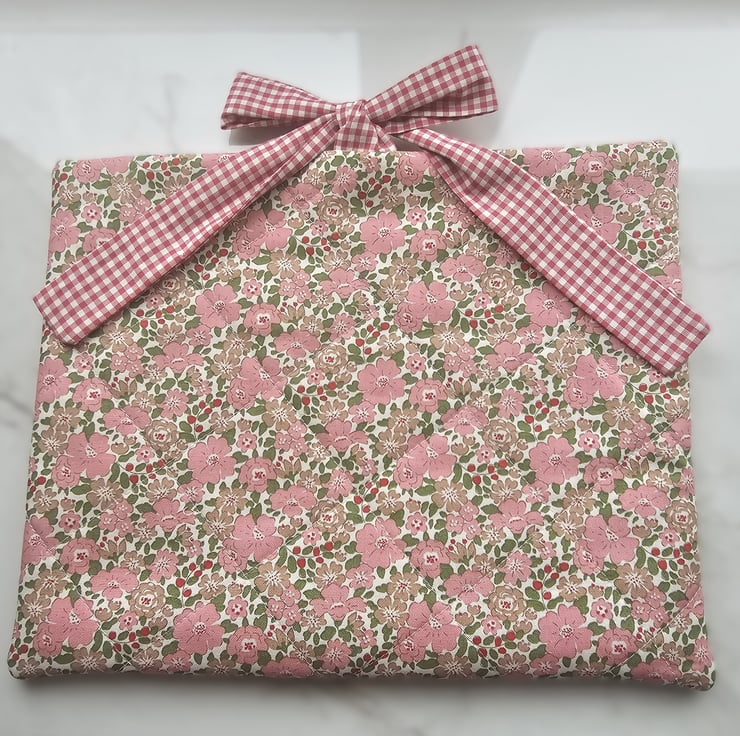 The sleeve features 100% cotton inside and out and is padded with batting to keep your favourite books, tablets or e-readers safe against bent pages and scratched covers.