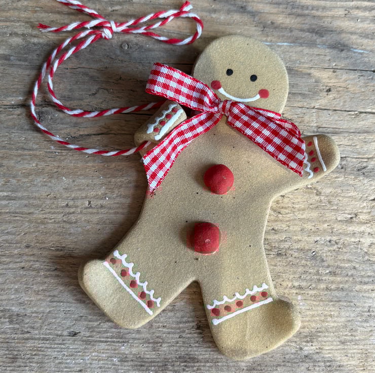 Made from a gorgeous buff stoneware clay that looks very similar to gingerbread after the final firing! His buttons have been hand sculpted and attached to his body before bisque firing. Hand painted before being fired for a second time to fix the colour detail to the clay.