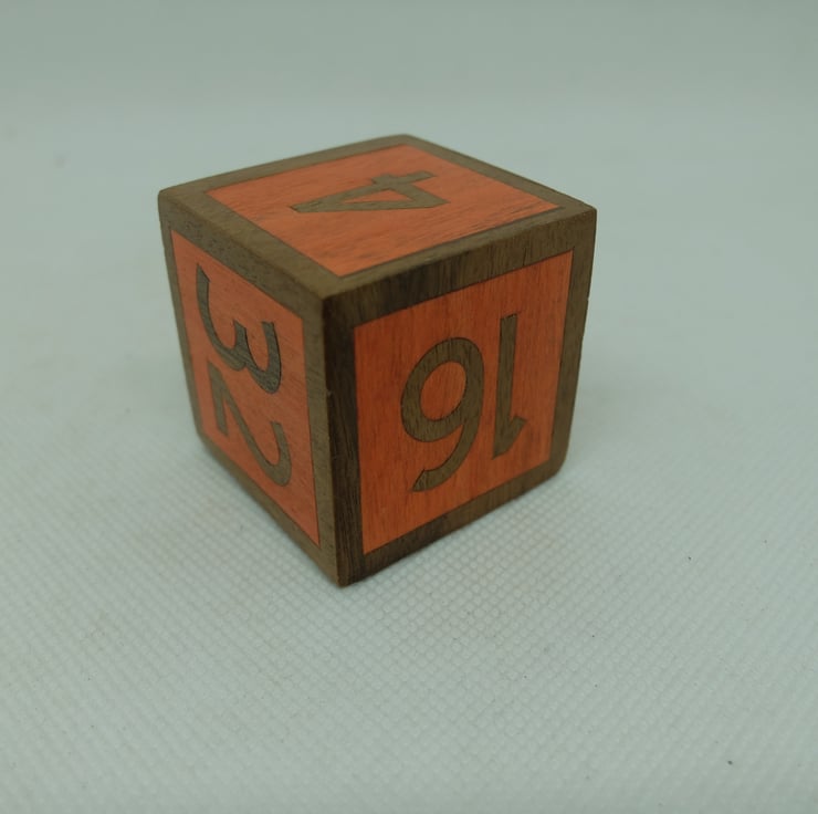 4.5cm each side hand veneered wooden doubling cube for use in Backgammon.