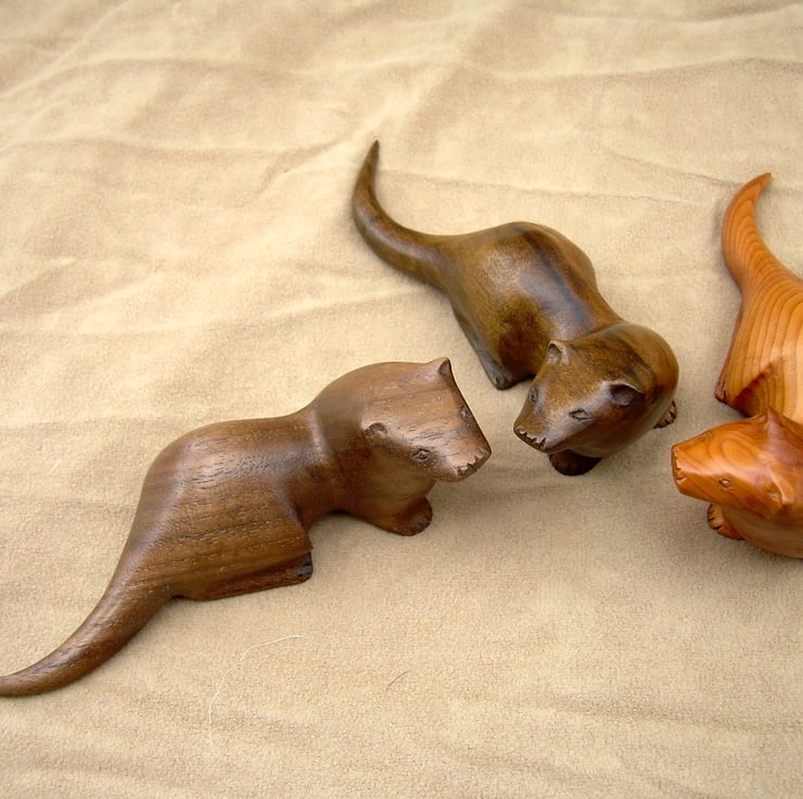 These individual otter carvings are made from walnut , which can vary from grey to brown.