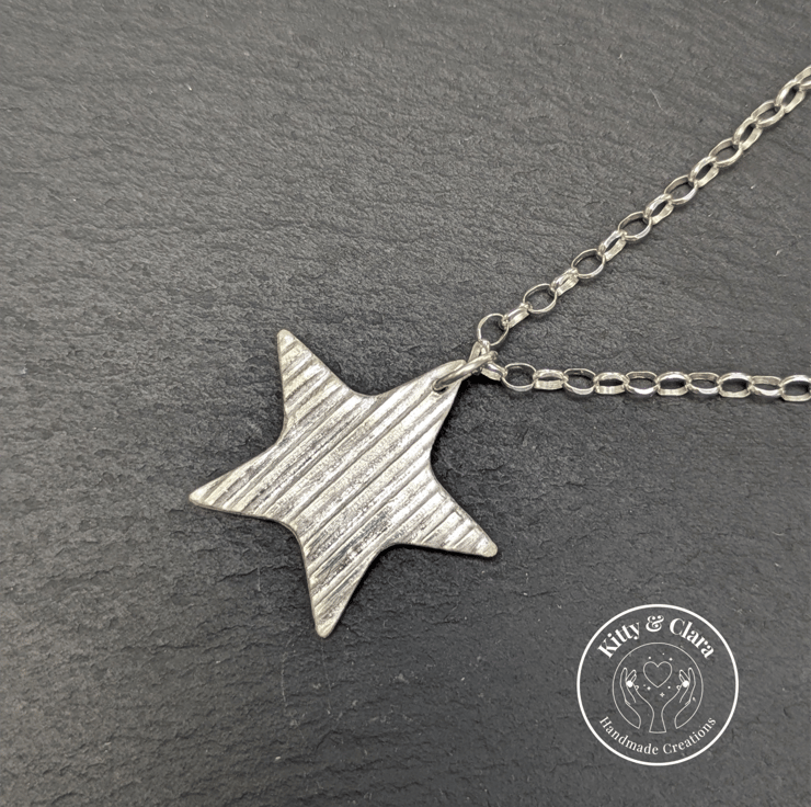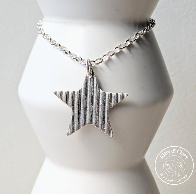 This is an on trend large fine silver star necklace with a 18" 2.9mm oval link box chain in sterling silver, complete with gift box. The star is approx 3cm wide.