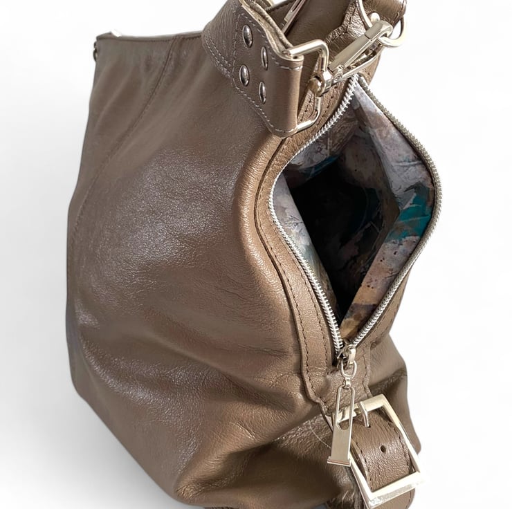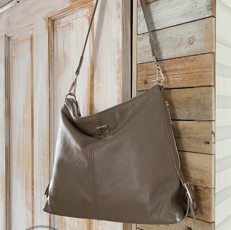 The Juliette - Handcrafted Taupe Grey Leather Slouch Bag