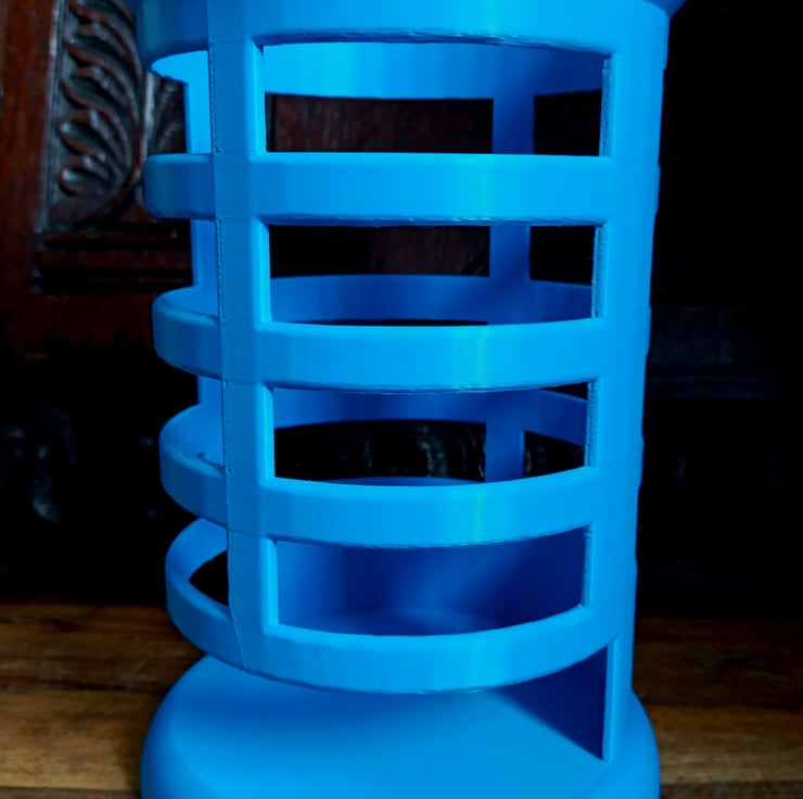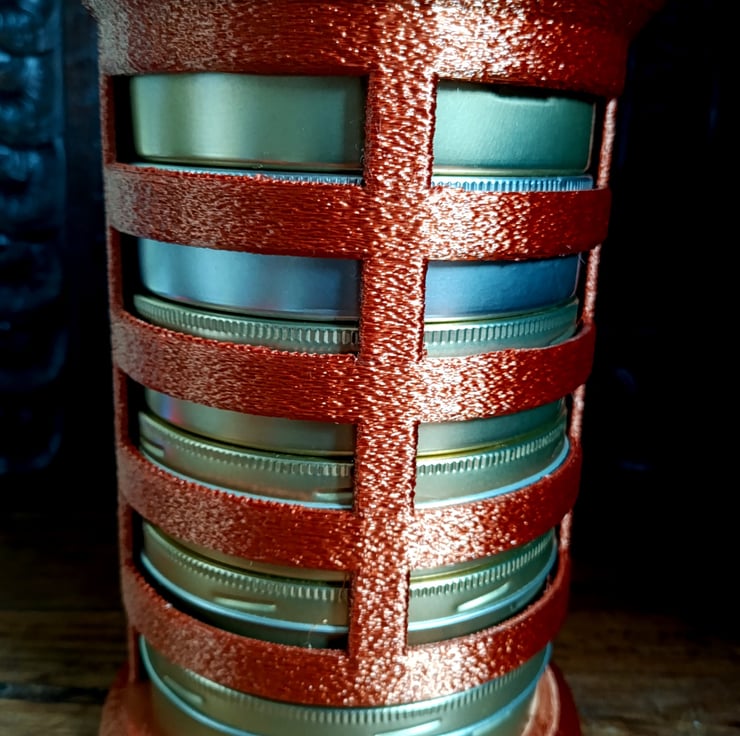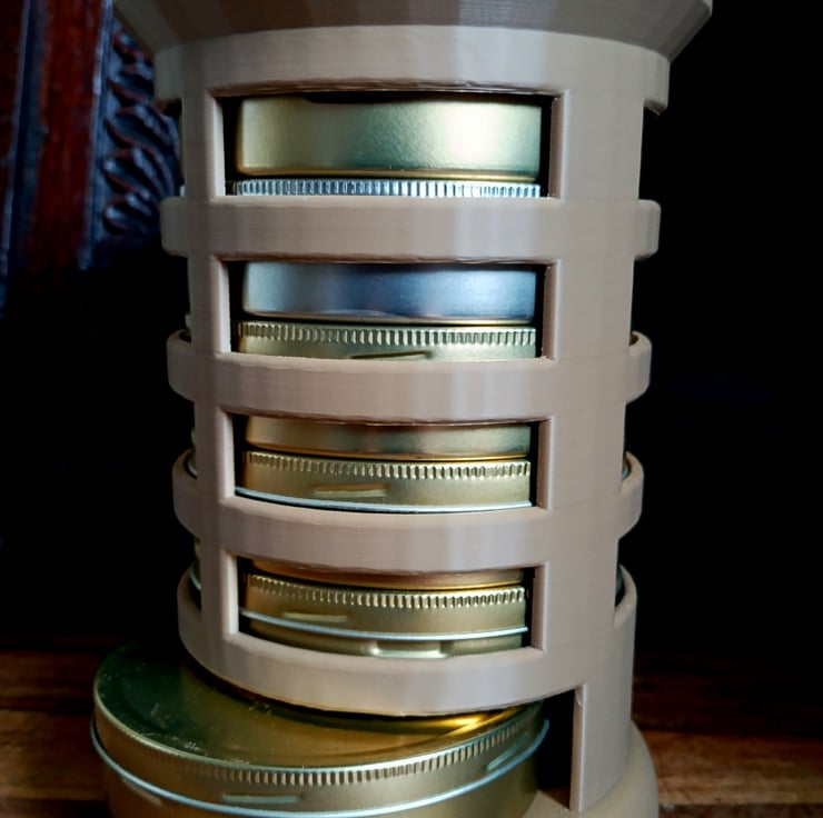 Finally the solution for keeping your tobacco tins in controlled rotation. I have always had a problem to remember if I already smoked that particular blend on that day. Also, which blend did I smoke as a last one. For that very reason I designed and printed The Tobacco Tin Rotation Device. Simply pick the tin from the slot at the bottom, load your pipe and put the tin back at the top of the device. It would became last one in the queue. You can load up to seven regular 50 grams tins.