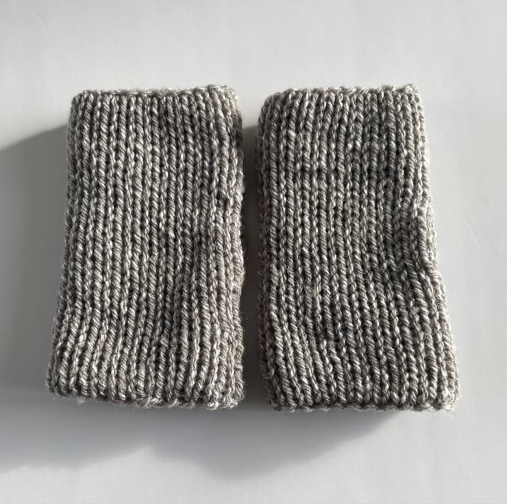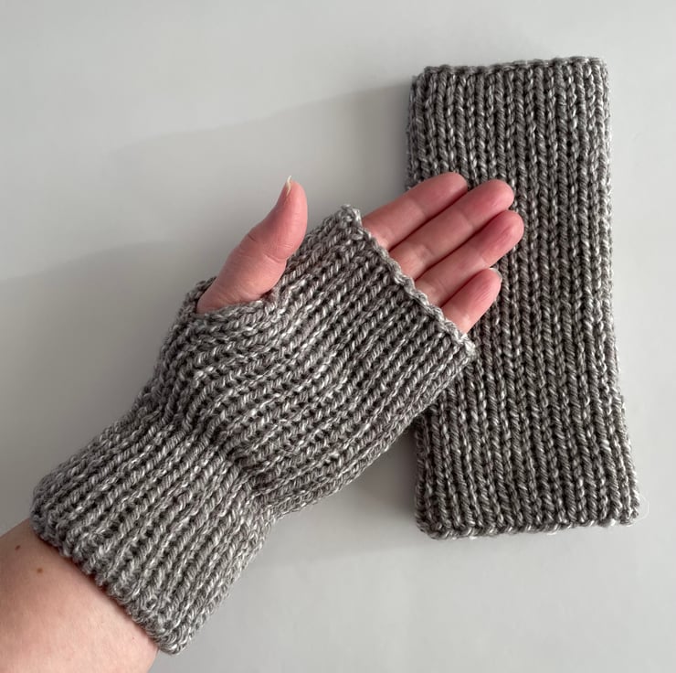These fingerless gloves are double layered, so they will keep your hands warm and cosy. When you need to use your hands, simply place your thumb inside, pull them further down your arm and wear them as wrist warmers.