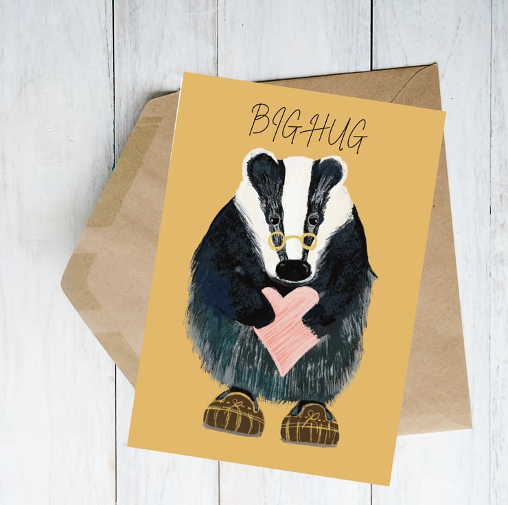 The cutest ‘grumpy’ badger in his best slippers ready to send a big hug to someone special