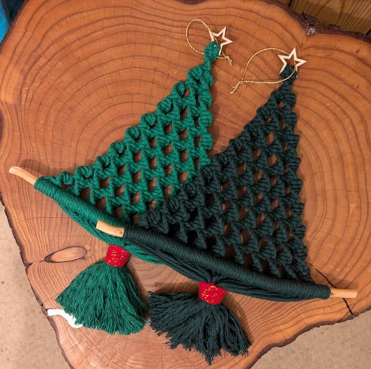 This Christmas tree wall decoration is perfect for bringing some festive spirit into your home. Each one is made from 100% cotton macrame cord and features an attractive spiral design.