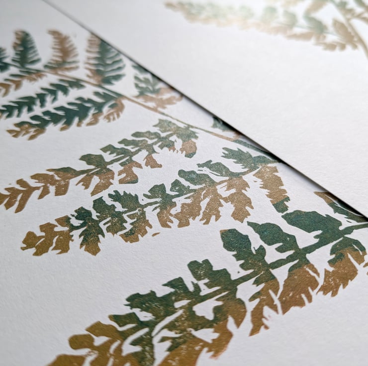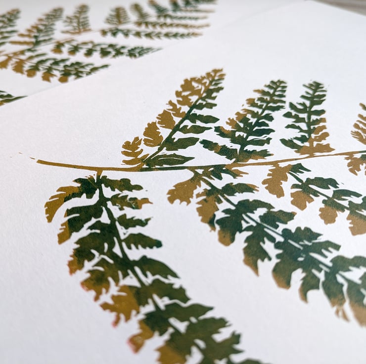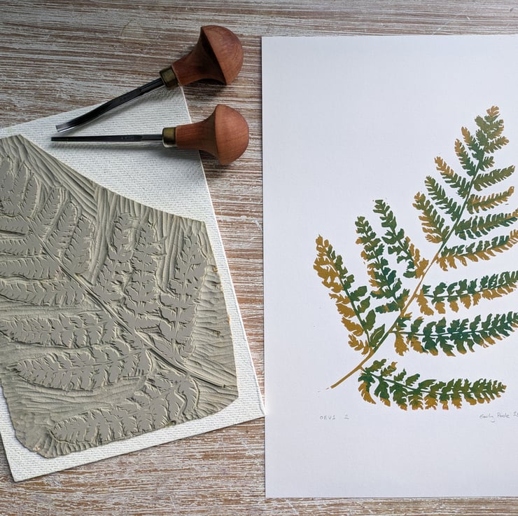 Forest Fern Linoprint, original leaf print linocut, natural botanical art
