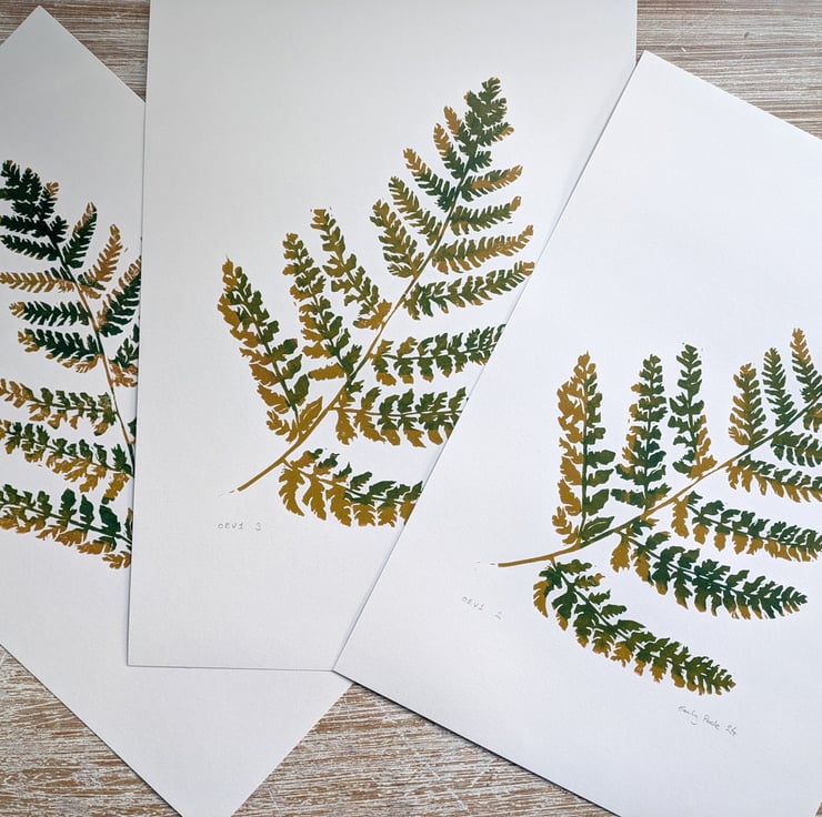 Each print was done by hand using oil-based safewash ink and a small lever press. The inking is slightly different on every print, using green and ochre ink to capture the first magical colour change of autumn, and so each item is truly unique.