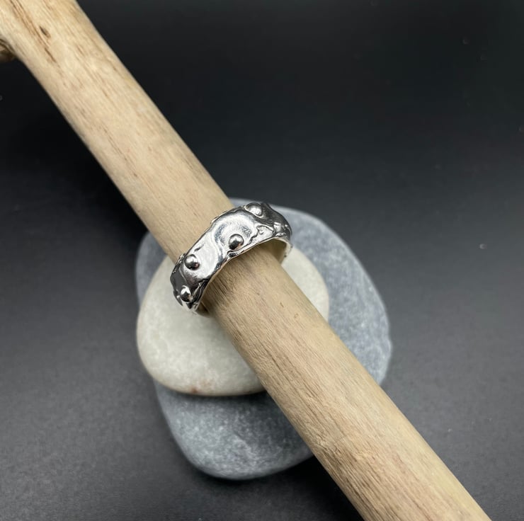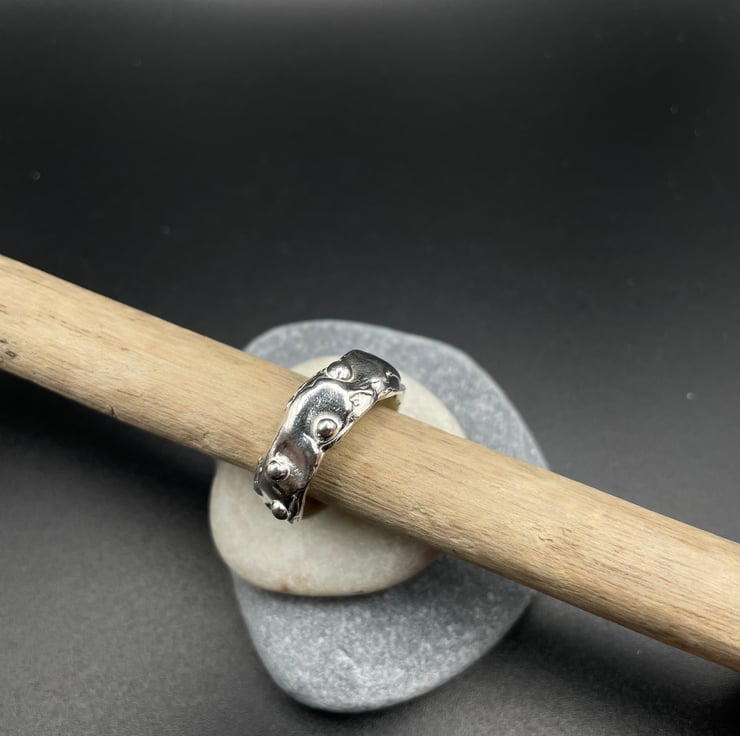 A chunky but comfortable ring that I crafted in jewellers wax before getting it cast in sterling silver as a one off piece.