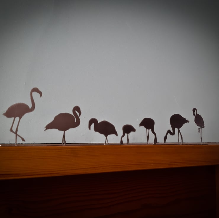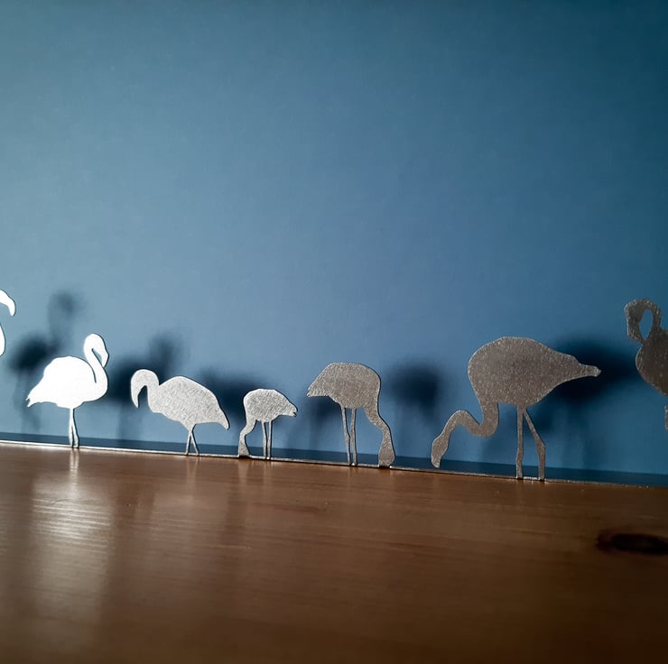 We are very fortunate to live near Chester Zoo and as members visit regularly. Their fabulous flock of flamingos is the inspiration for this shelf ornament.