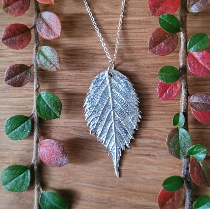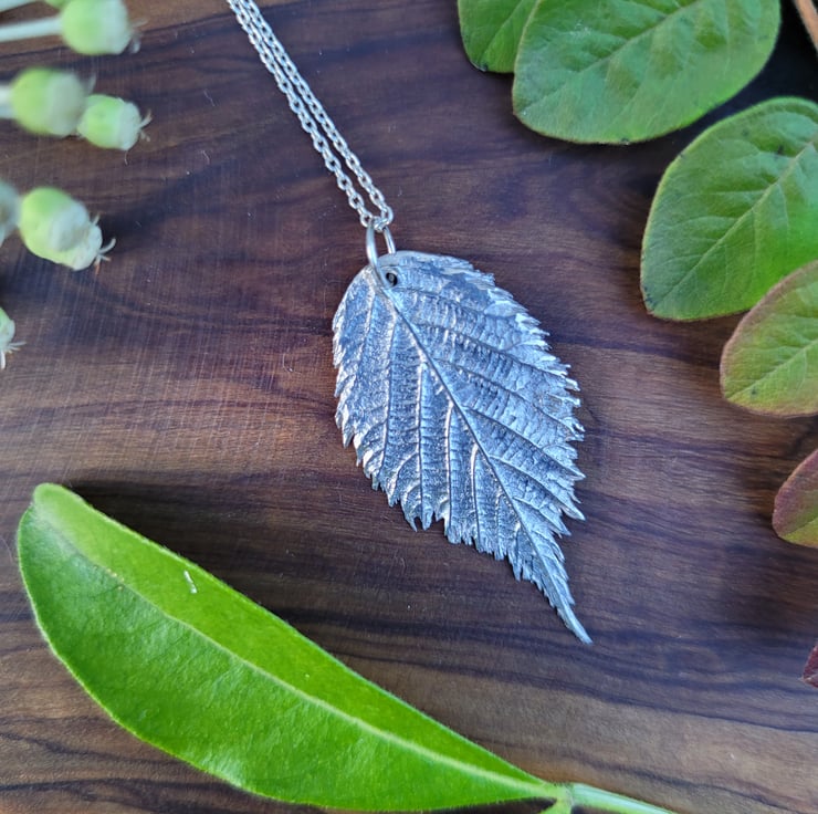 All my pendants are handmade from silver clay, using real leaves. I create an imprint and mould of the leaf to capture every detail. Silver clay is then pressed into the mould before being dried, sanded, fired and polished.
