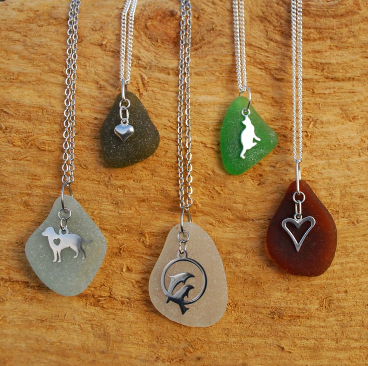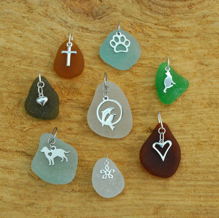 Create a beautiful pendant from your own sea glass! Send us your sea glass and we'll make a unique pendant from it for you, adding a charm if you wish. The pendant will come with a 50 cm (20") chain to match the charm (other chains are available on request). Please note that the processing time is based on you posting your glass within 3 days of ordering.