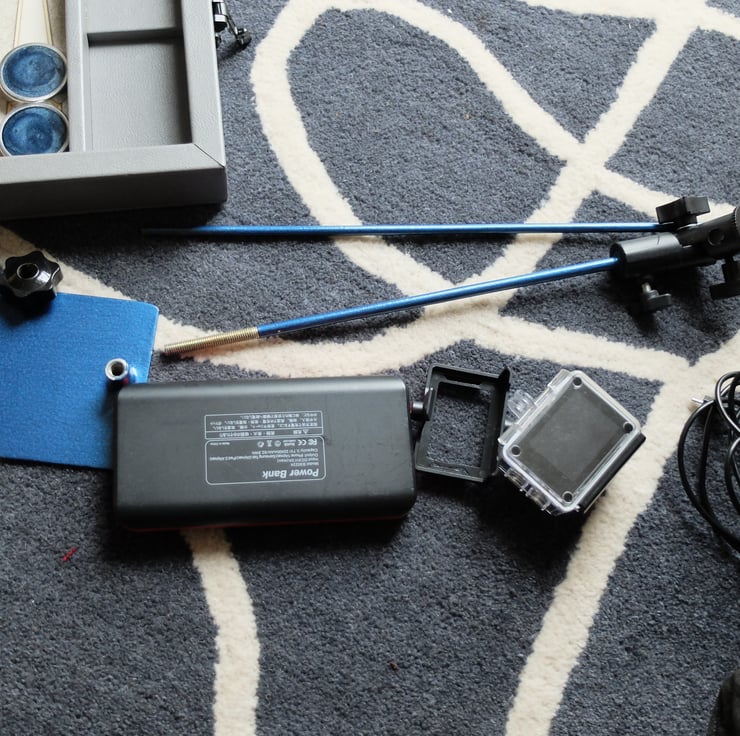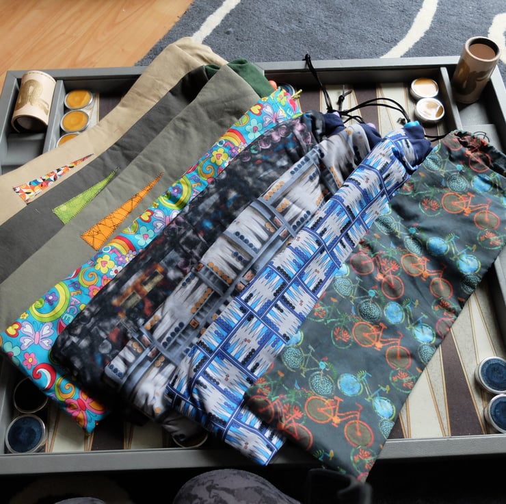 This is a padded bag made to fit the components of the small metal take-apart camera stands for use in recording your Backgammon matches. Please see photos to see what fits...depending on your power pack size and camera size you could possibly put it all in here and then carry it inside your board, rather than having another box or bag to carry.