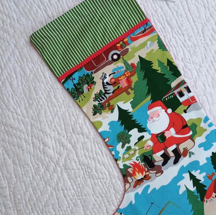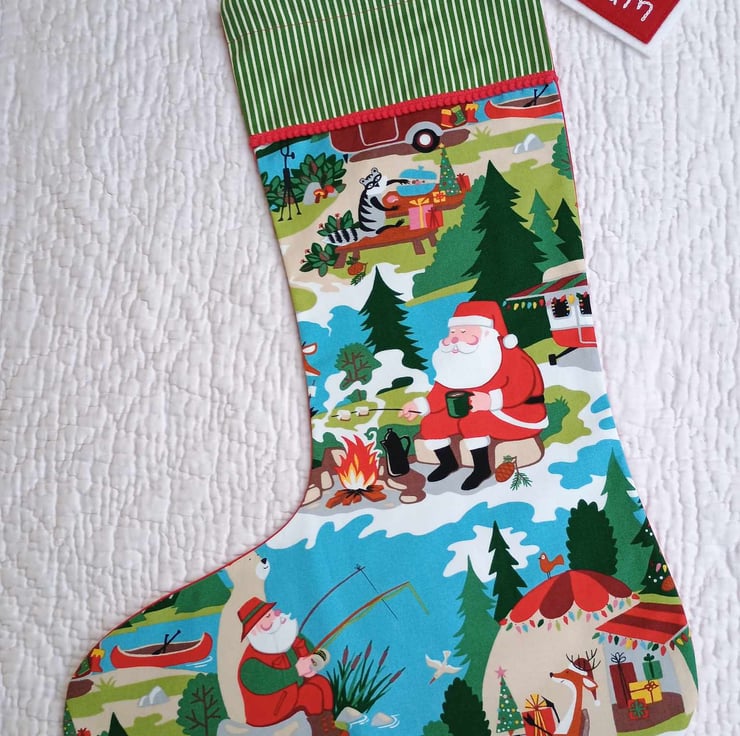For Dad. Or Grandad. Or anyone that loves the outdoors or retro festive decor, my large Christmas Stocking has Santa camping in the woods with his reindeer.