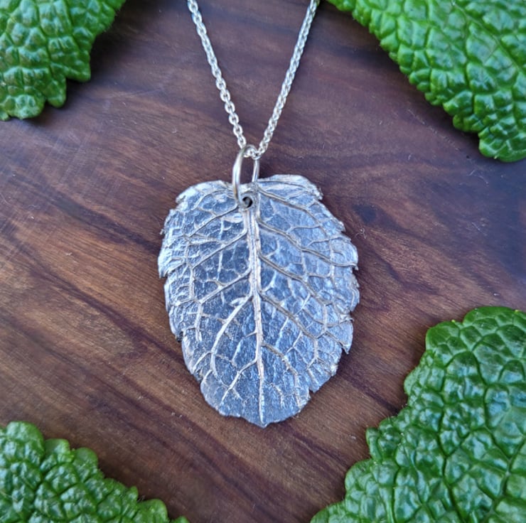 This silver necklace was made from a garden mint leaf from my garden in Berkshire. The intricate veins and details capture nature and create a beautiful and unique pendant.