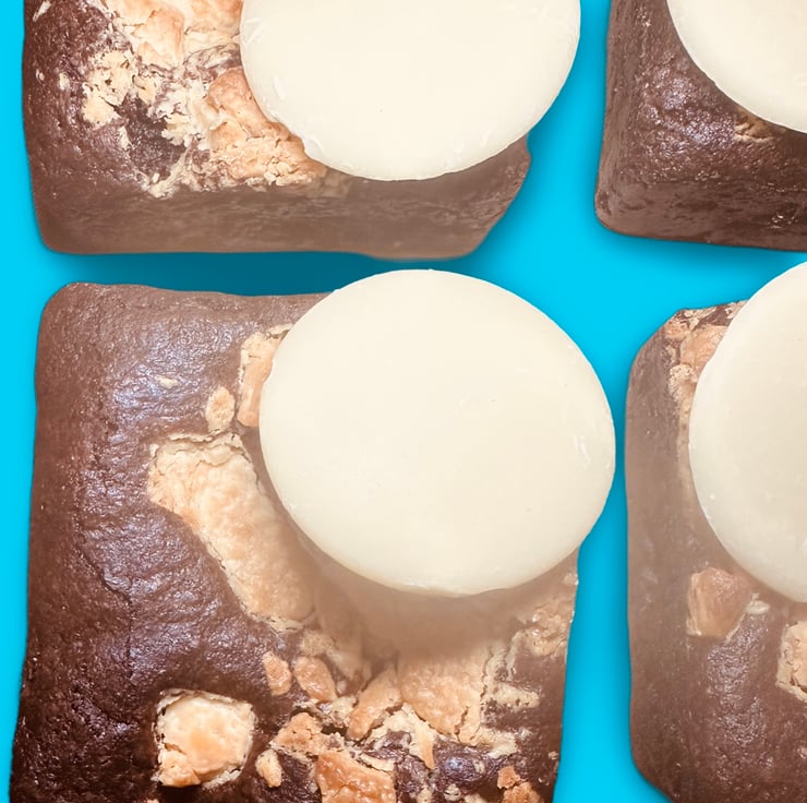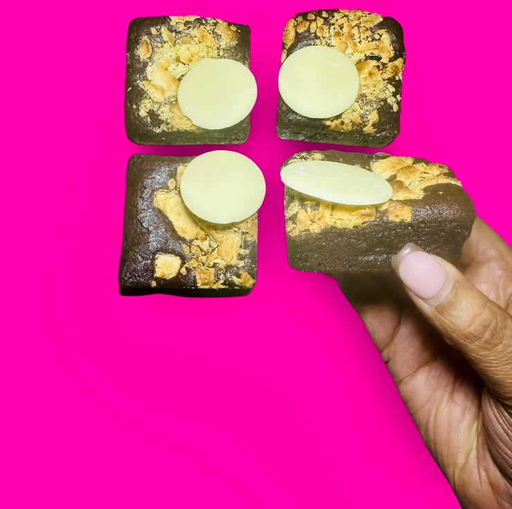 Each layer was carefully developed to complement the others. The base needed to be fudgy enough to support the filling, while the white chocolate filling had to be just the right consistency to create that perfect bite. The giant buttons on top weren't just for show - they add an extra texture and an exciting finish to each brownie.