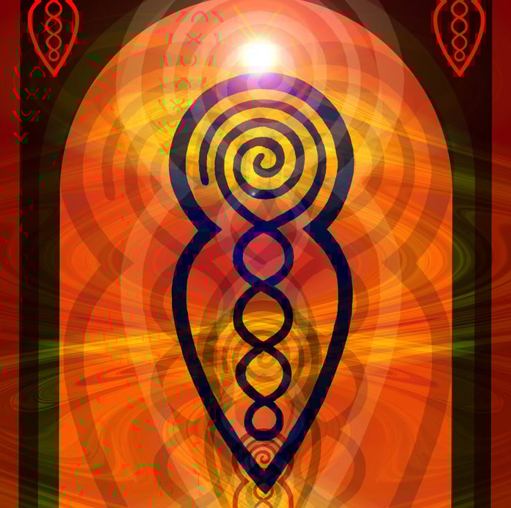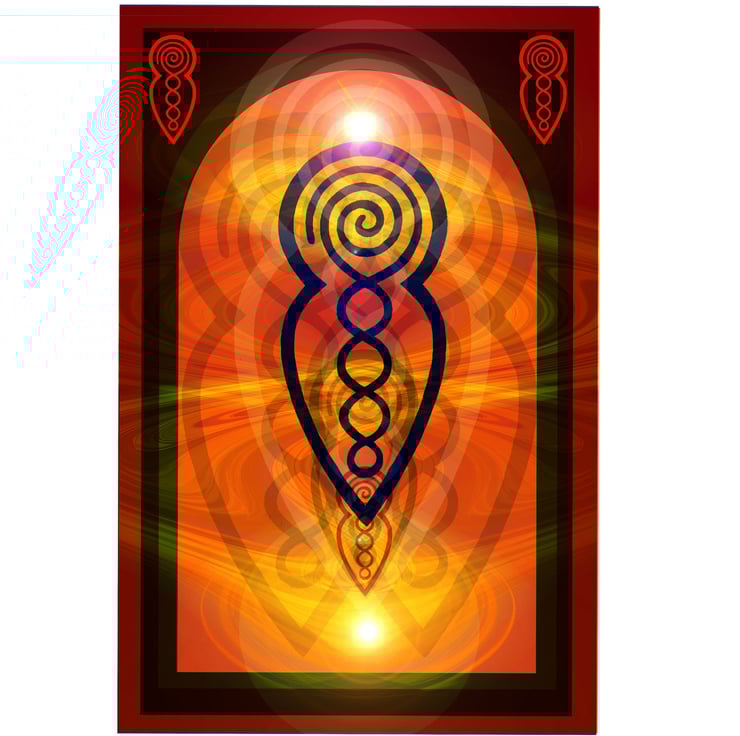 The image represents the 'energy dance' , the manifesting expression of the yew tree, both in the shapes and the colours used.
