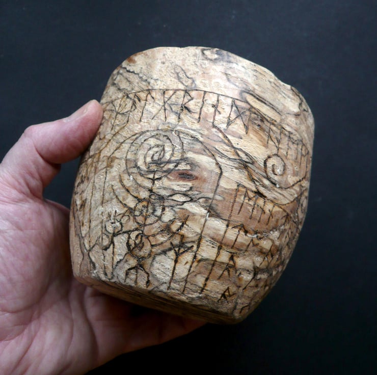 The rune text is taken from the Poetic Edda, stanza 22 of the Grimnismal: