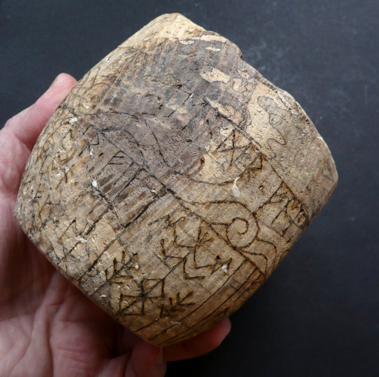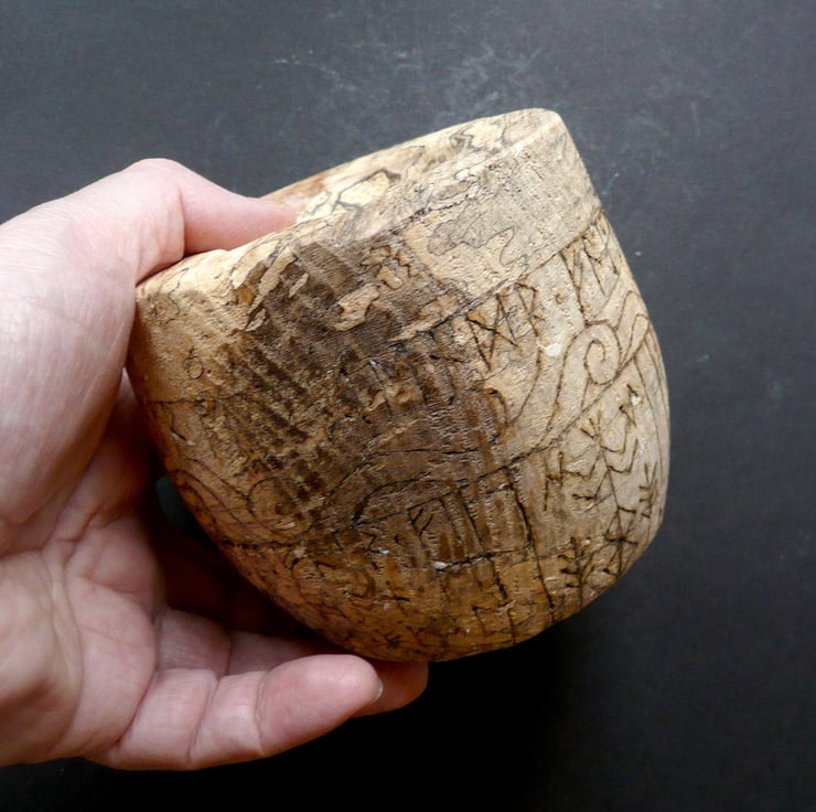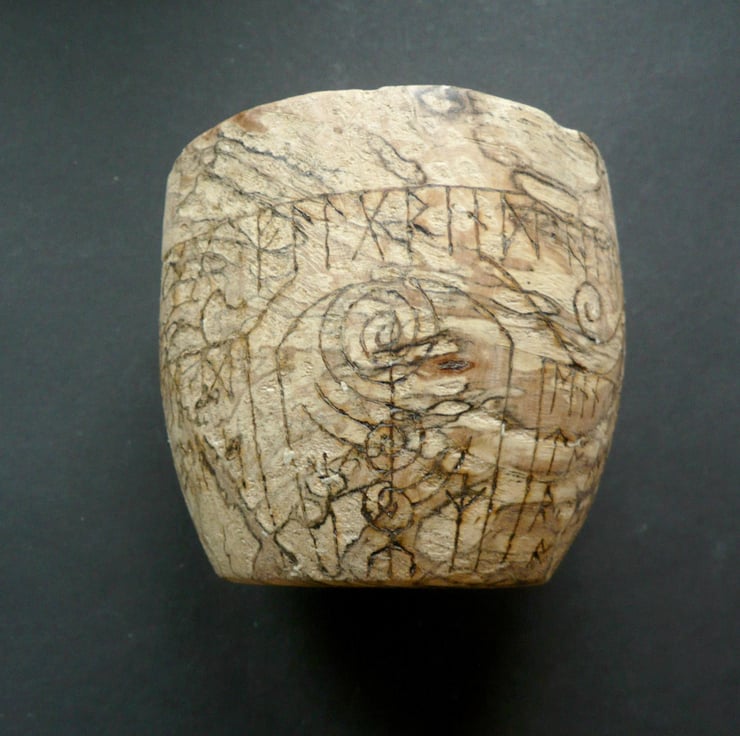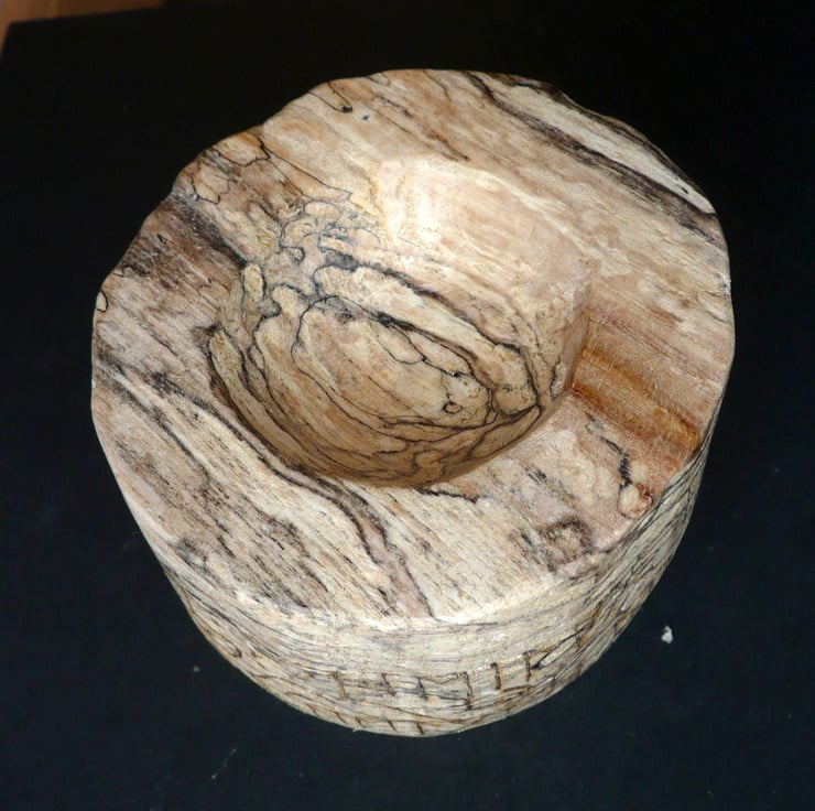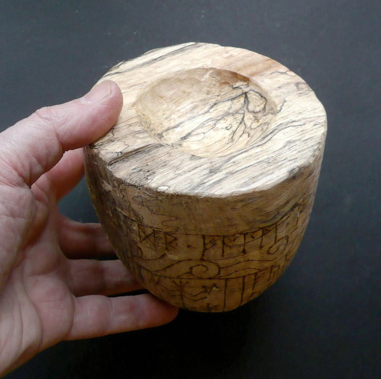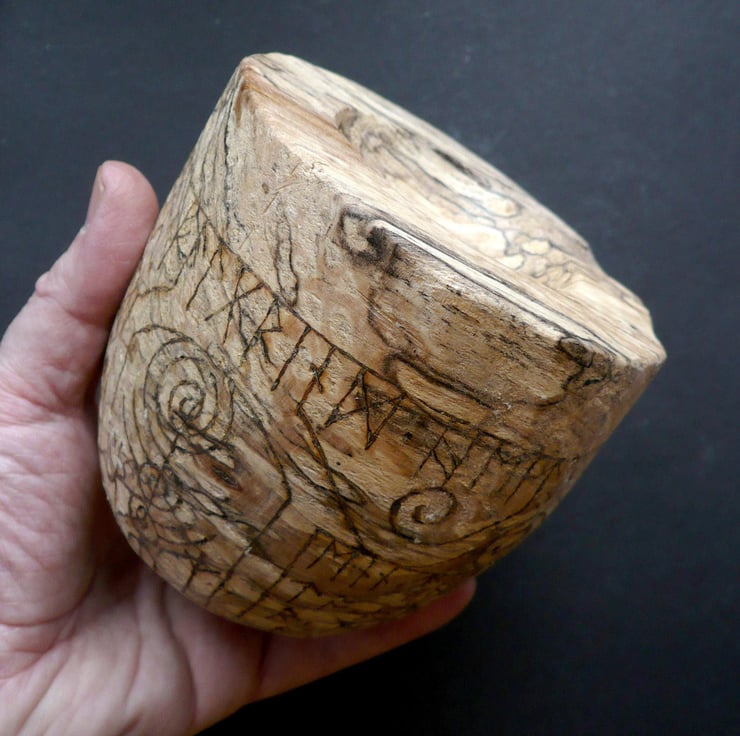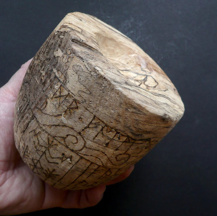 A heavily spalted bowl of beech wood. The swirling light and dark patterns created by fungal growth are a fitting metaphor for exploring the energies of transformation, Life and Death.