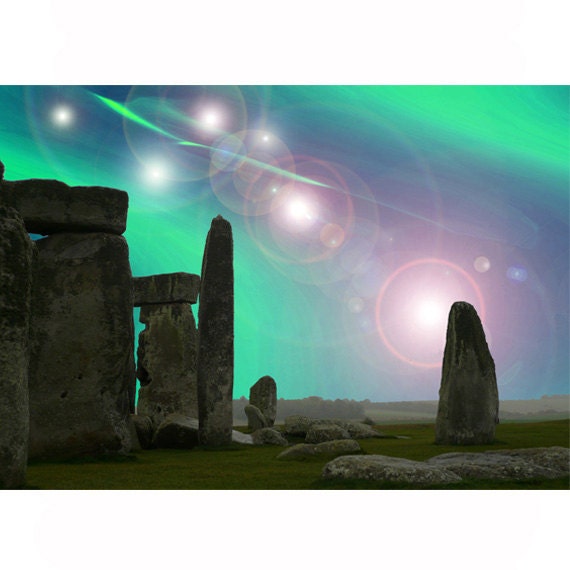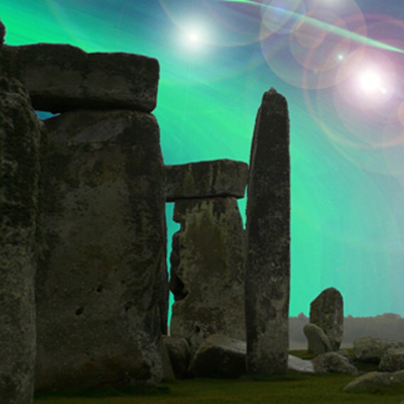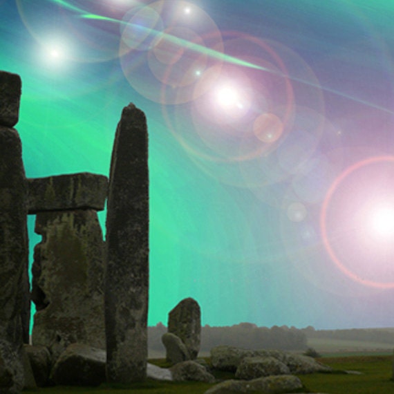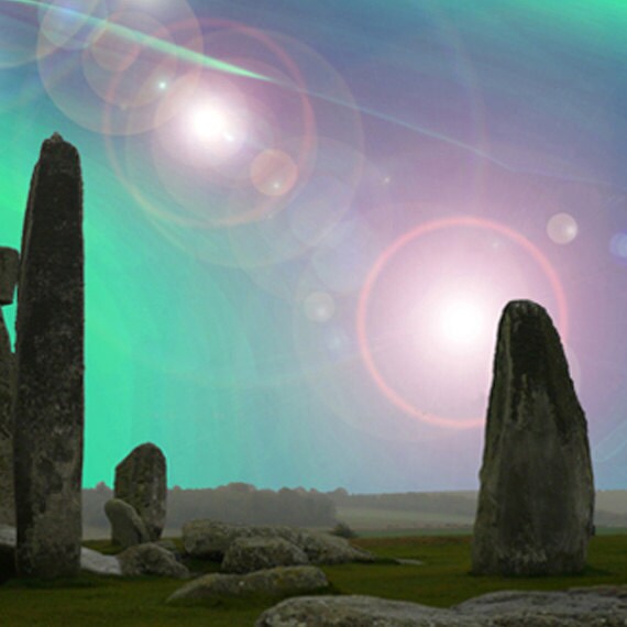 The original photograph of Stonehenge, which is about an hour and a half drive from where we live, was taken one misty Sunday morning last October. The light was soft and still, and the stones stood out well from the background features. I have been working recently with Preseli bluestone, the unique rock which was used in the central stones of Stonehenge, and which have interesting properties for healing and expansion of awareness. This image is one of a series I have recently begun to put together to share some of the visionary experiences that people have had with bluestone in healing and meditations...