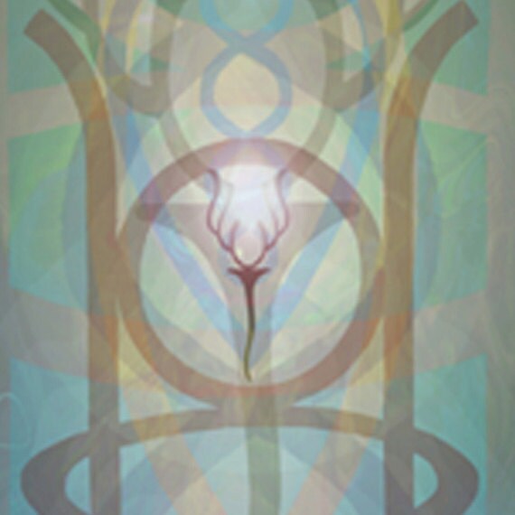 I have worked with the healing qualities of trees and tree energies for many years now, making a series of flower essences from British trees ("Green Man Tree Essences"). As well as using this traditional method, I also use visual keys as means to access their healing energy. Many of my prints contain these visual keys so that the healing influence of the trees can have a beneficial influence within the space they occupy.