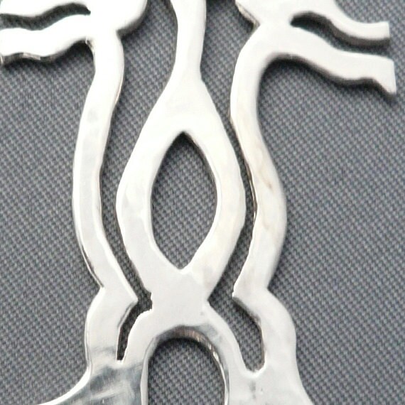 Size: approx. 1.75" x 0.75". Cut by hand from 1mm sheet silver and supplied with a silver chain in a presentation box. The piece is fully hallmarked (including the special 'Queen's Diamond Jubilee' mark, only available this year.)