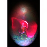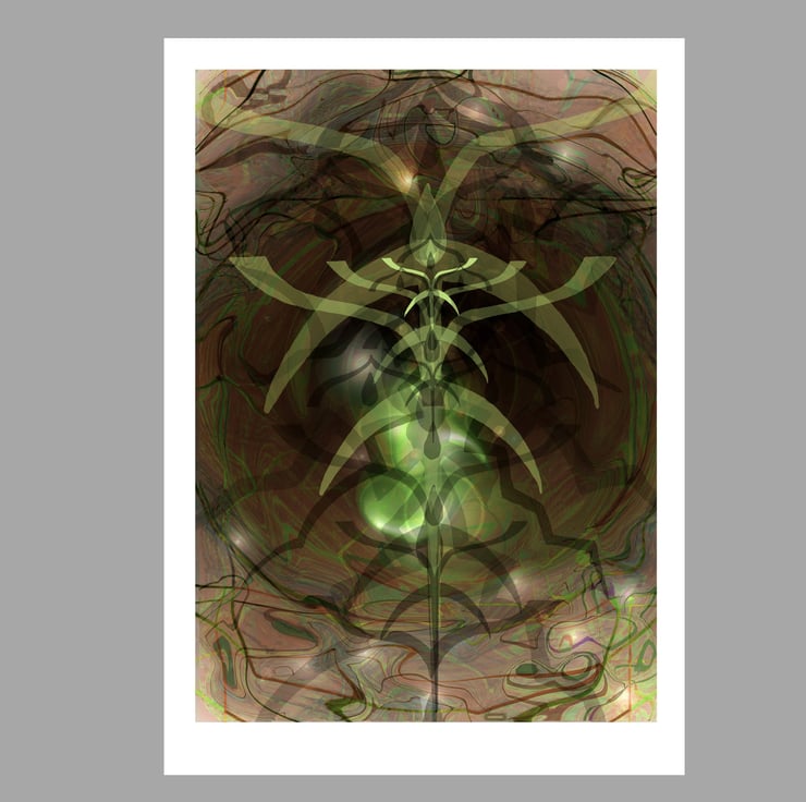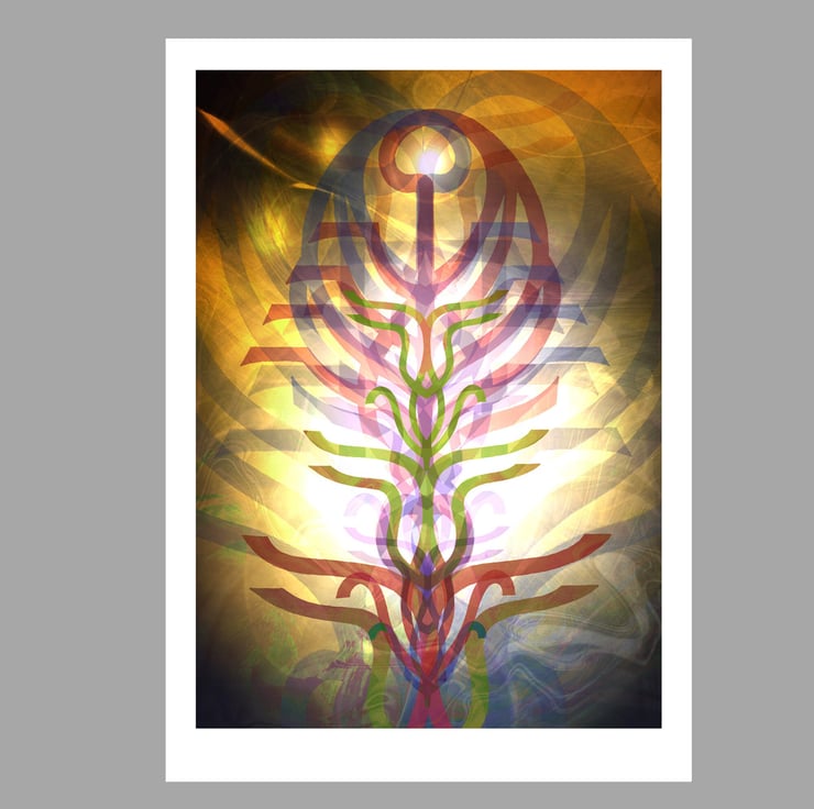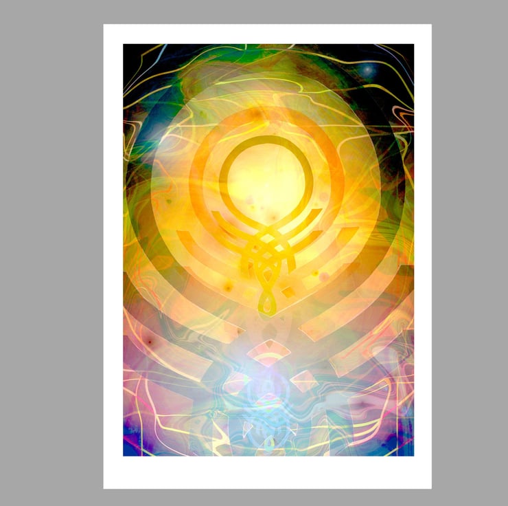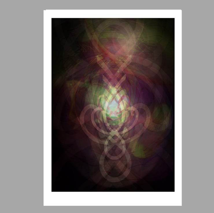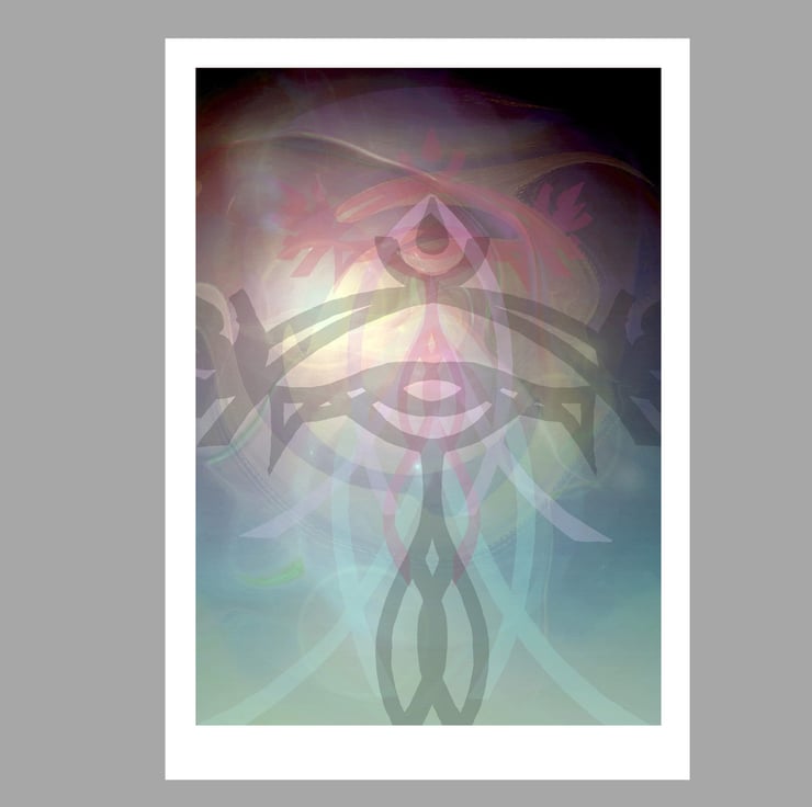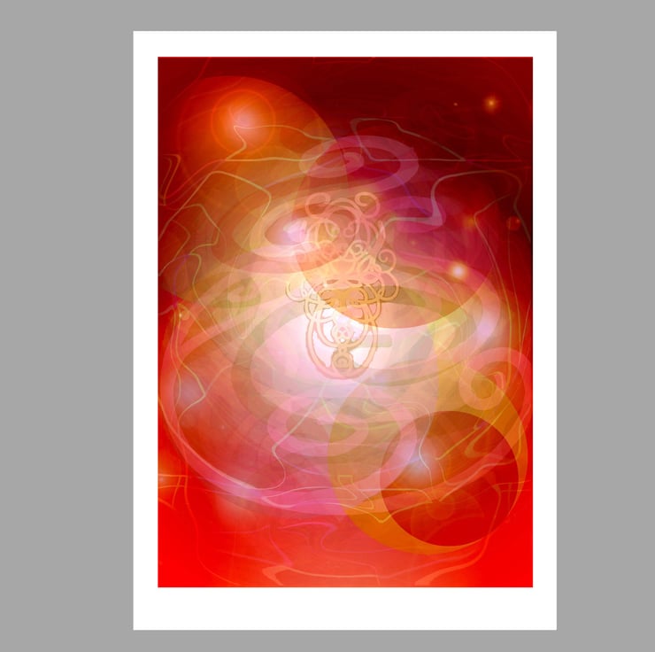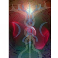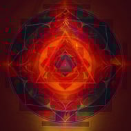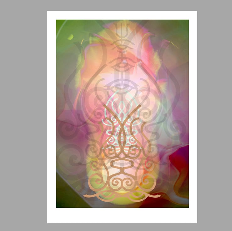 The images were created from paintings of the symbols I created to represent the energy of each Mahavidya. These were then superimposed and layered many times. Each image is designed to be a focus for contemplation. This means that they benefit from prolonged, relaxed gazing where different levels of colour and image come to the attention in an unfolding, dynamic manner.
