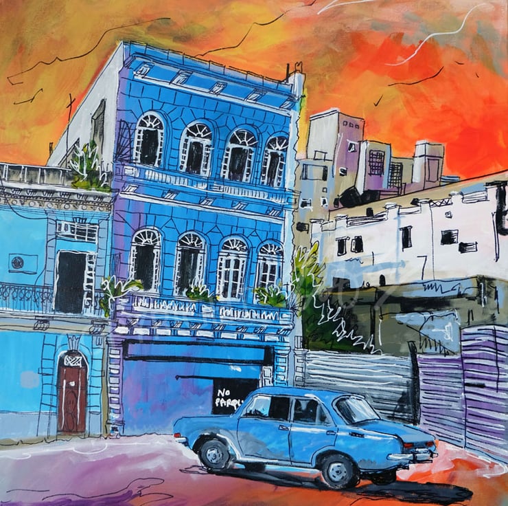 A high quality, mounted and framed Giclée Limited Edition Print of 'A Lada Day', a painting inspired by a recent trip to Havana in Cuba. ! An exclusive print run of just 27 editions.