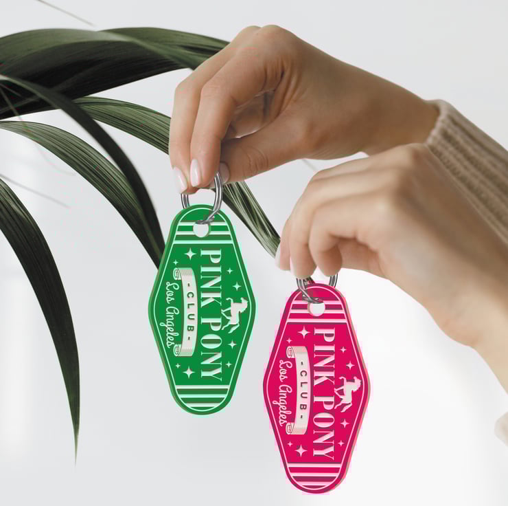 Whether you're heading out to dance the night away or just dreaming of your next adventure, this keyring channels the vibrant energy of the Pink Pony Club and Los Angeles nightlife.