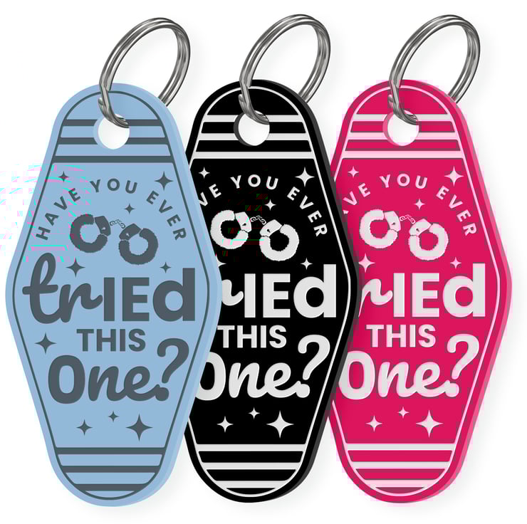 Channel the cheeky and playful vibe of Sabrina Carpenter’s hit song "Juno" with this "Have You Ever Tried This One?" motel-style acrylic keyring. This retro-inspired design, featuring bold lettering and fun motifs, is the perfect accessory for music lovers who love to express their personality with unique style.