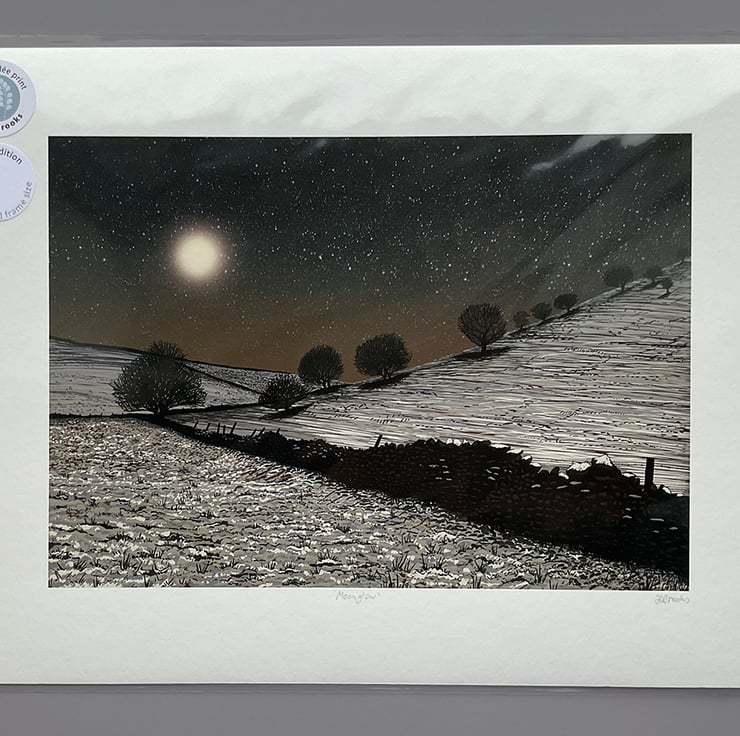 'Moonglow' - an open edition, fine art giclee print on Hahnemuhle 290gsm Agave eco paper. The image is created by drawing directly onto an iPad using Procreate.