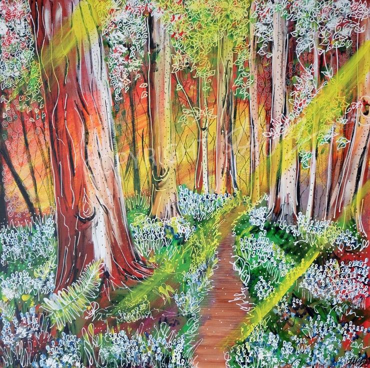 A high quality, mounted and framed Giclée Limited Edition Print of 'Rays', a painting inspired by rays of sunlight piercing through a forest. An exclusive print run of just 27 editions.