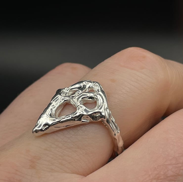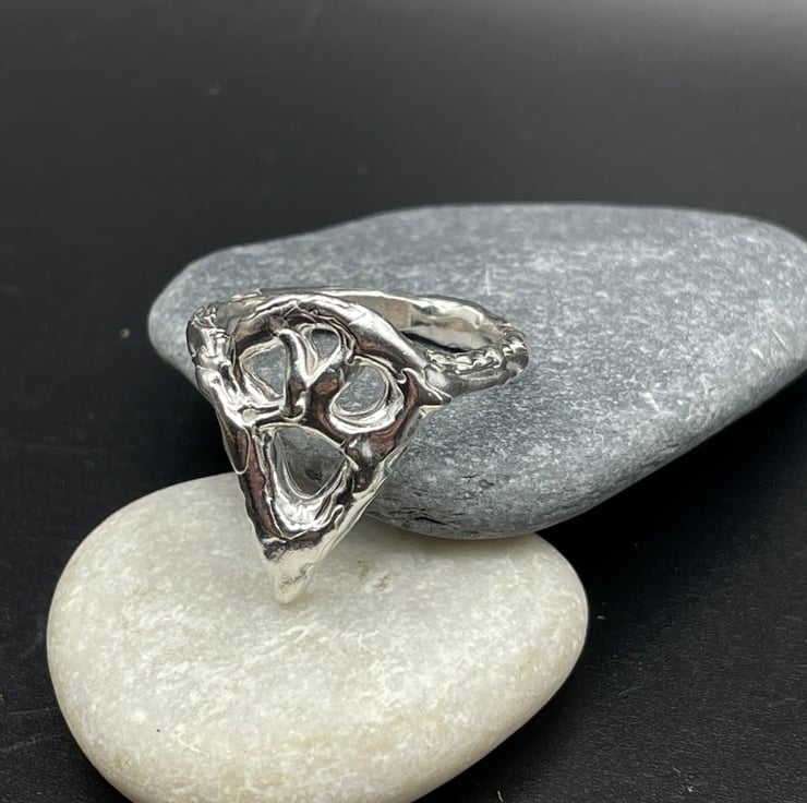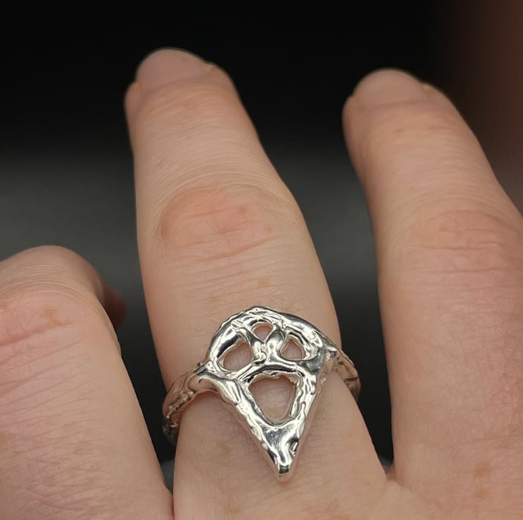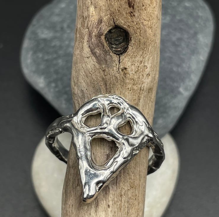 This unisex ring was hand crafted from jewellers wax and then cast in sterling silver.