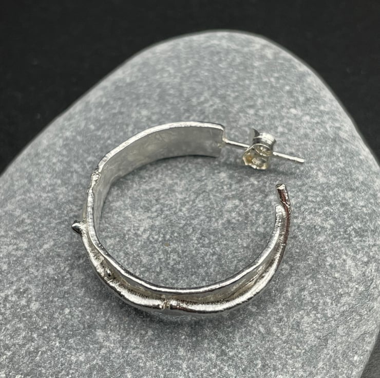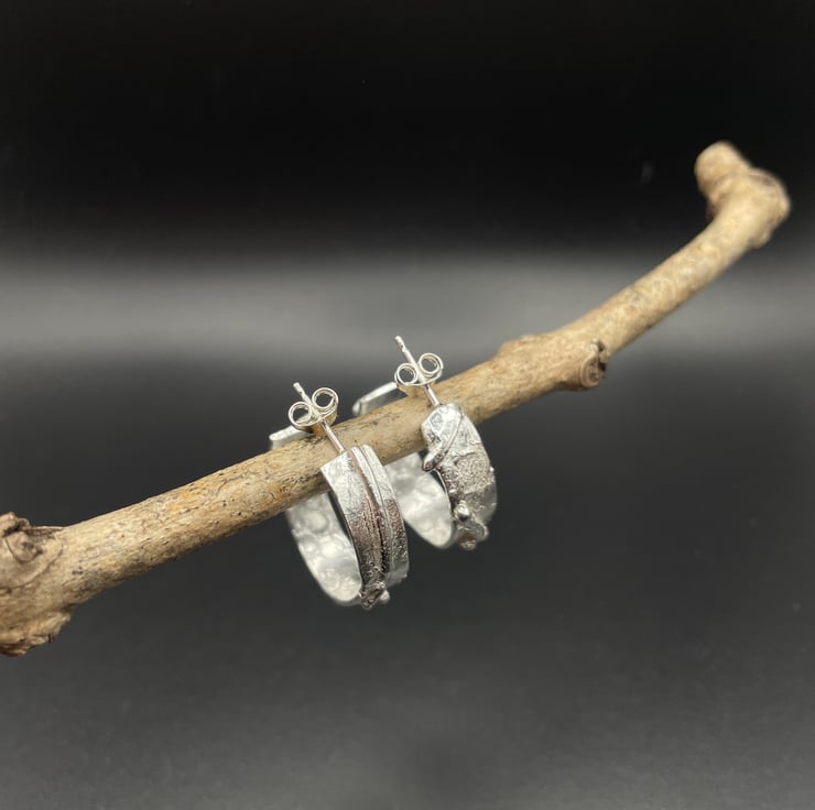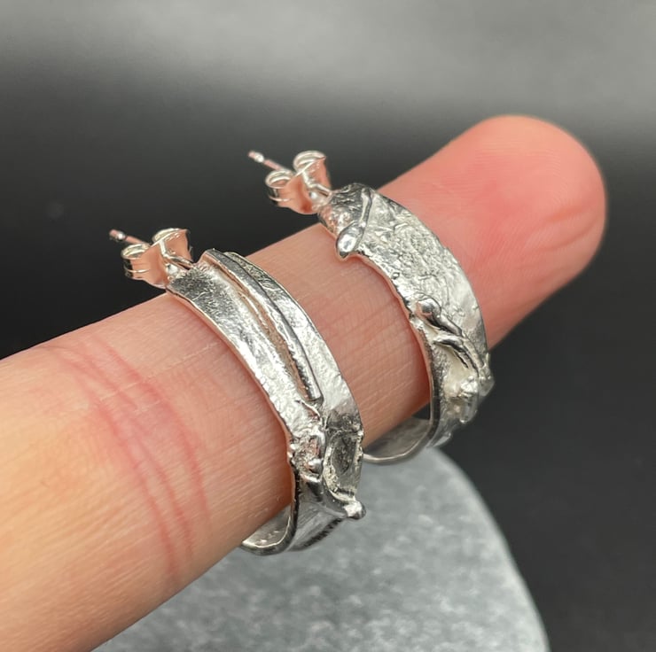 Abstract hoops, made from sterling silver that I gently reticulated to give them that matte, grainy texture.