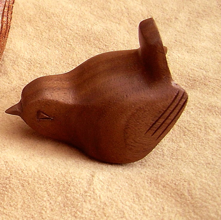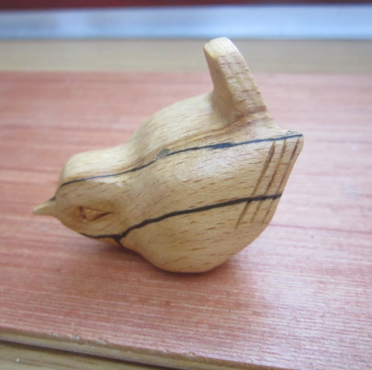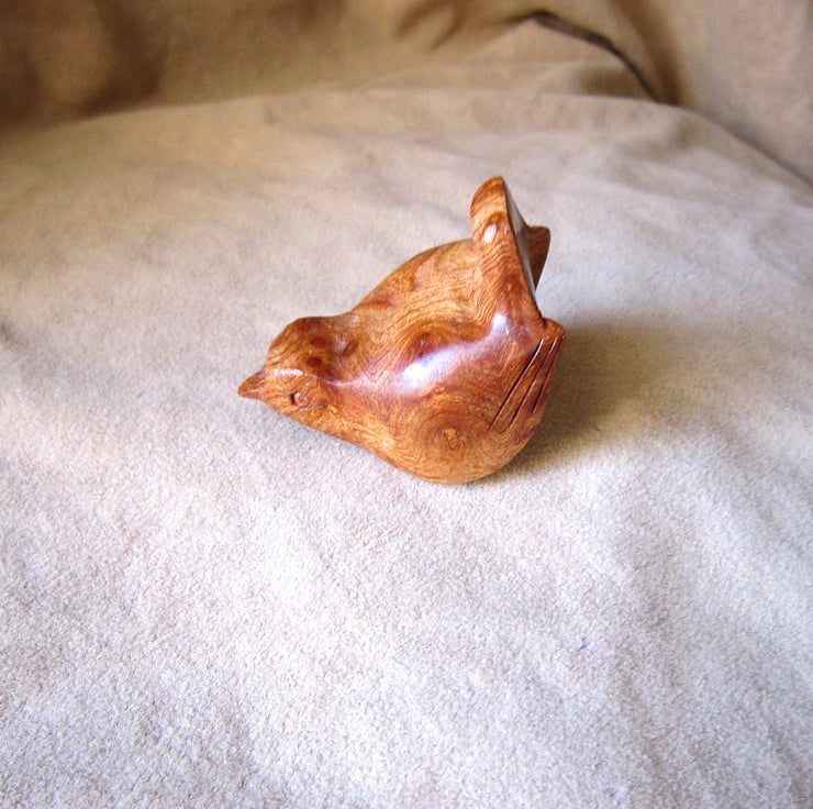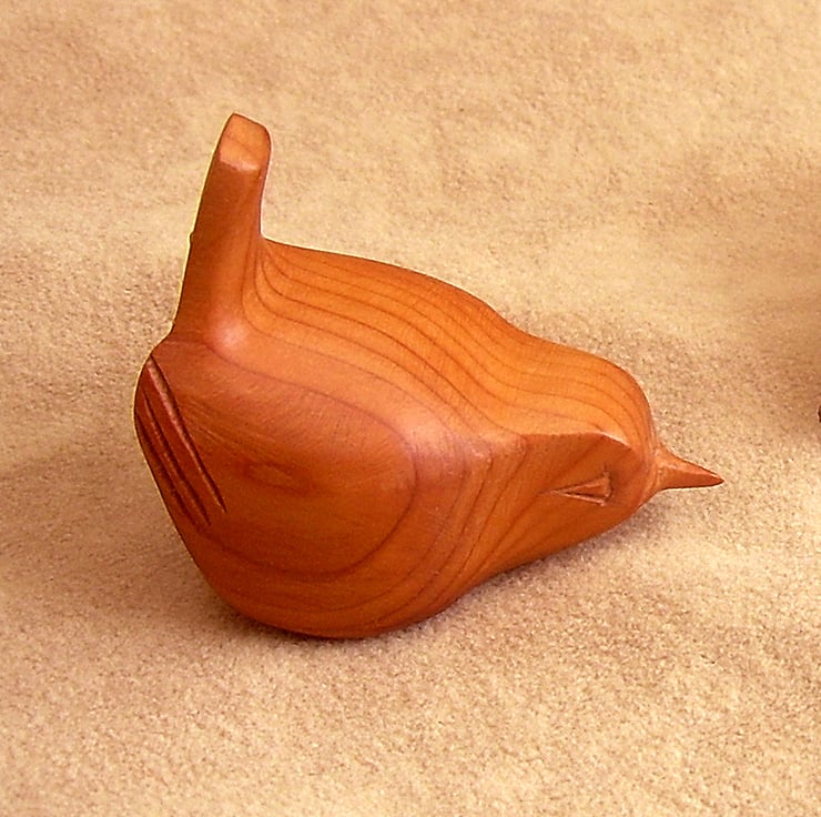 wren carved in a choice of 3 different woods: 1) yew ( orange colour )