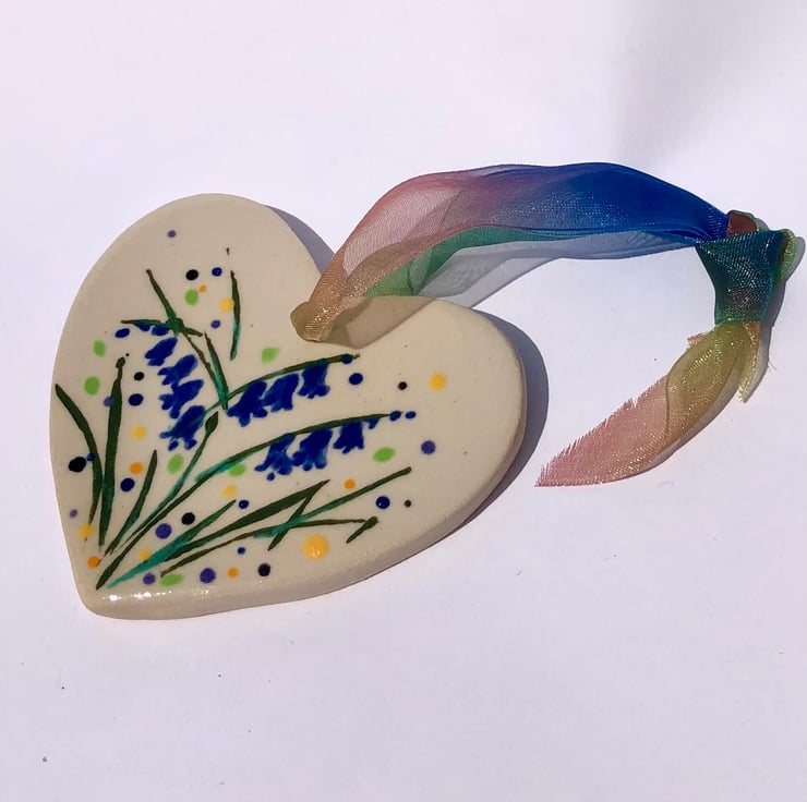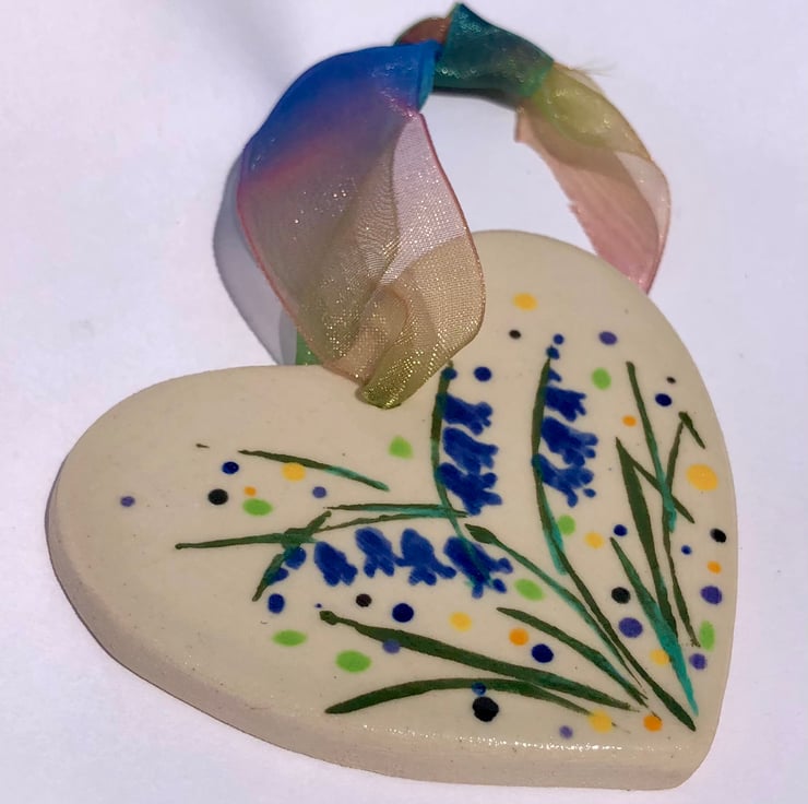 Add a touch of charm to your space with this handmade ceramic heart. Delicately hand-painted with a beautiful bluebell design.