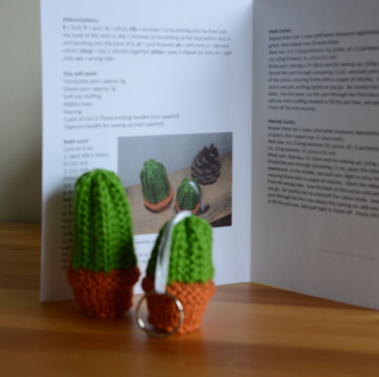 My daughter has many cacti on her windowsill. I've been knitting since childhood, and designing my own patterns for a while now, so I thought it would be fun to design and knit a cactus! This kit is the result.