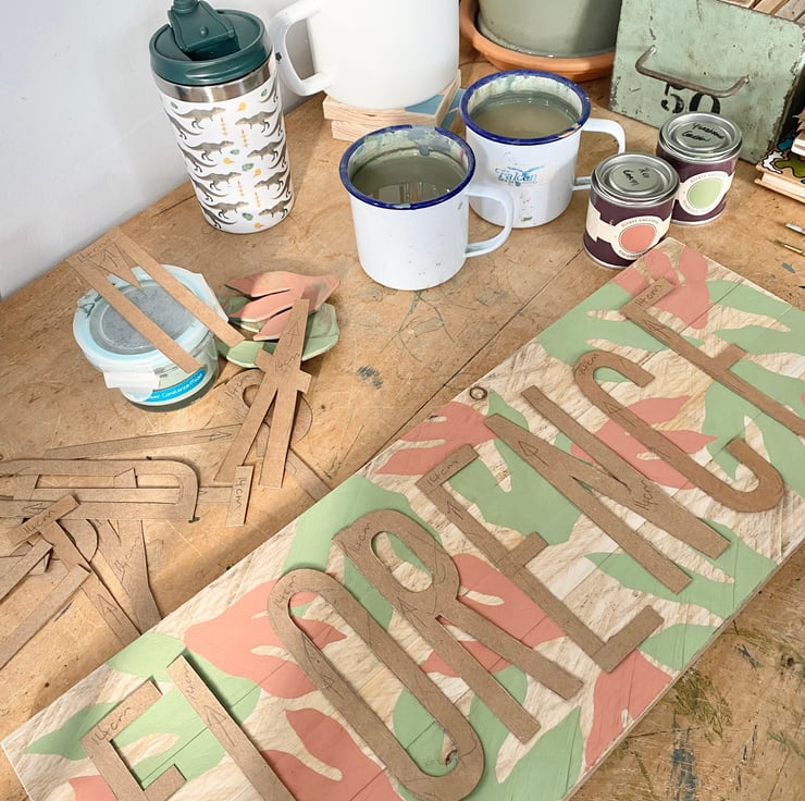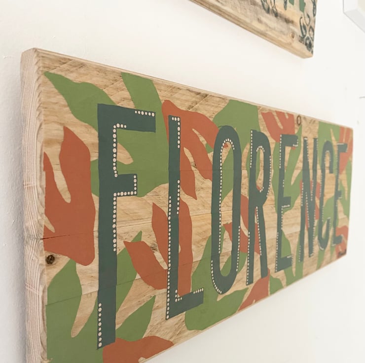 All my signs are handmade from start to finish from my initial selection of timber to drawing and cutting my own stamps. I select timber that hasn’t been planed and whilst sanding I like to keep all of the knots and textures which make each sign unique in feel. Each sign is hand stamped and painted using beautiful natural colours and finished with matt varnish.