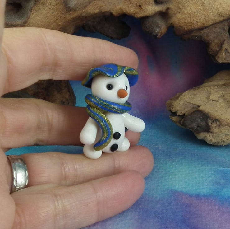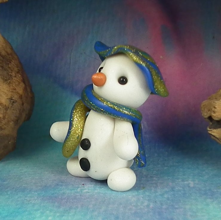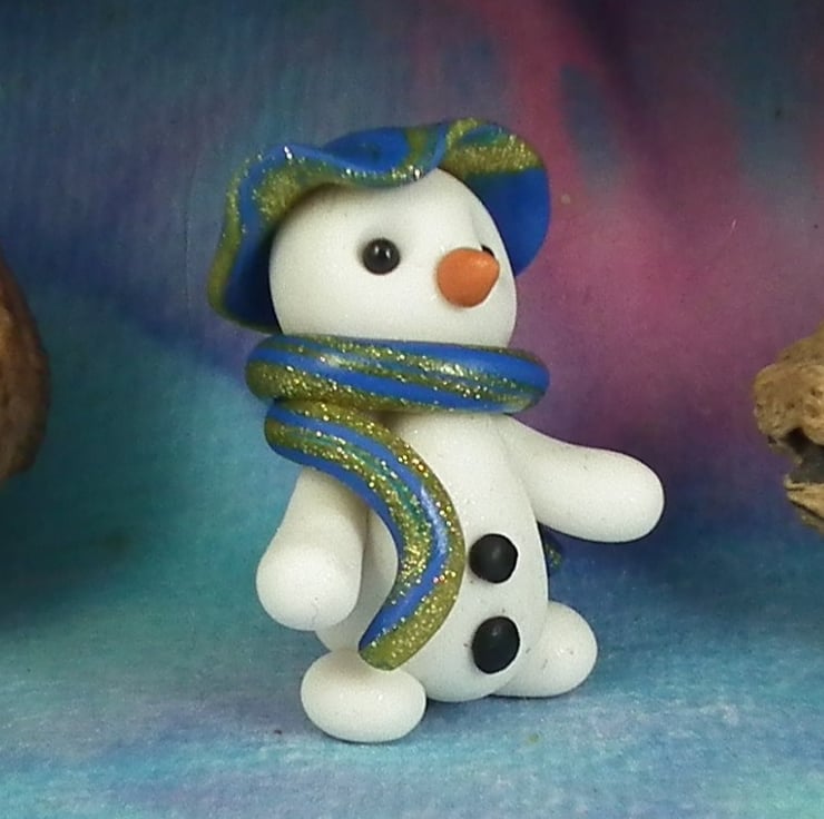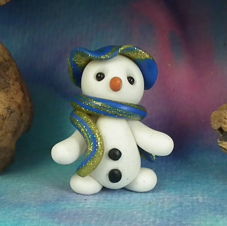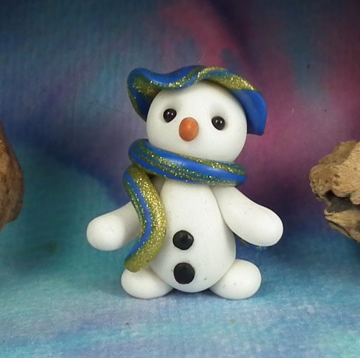 This is a 'one of a kind' creation having been entirely handmade without the use of moulds here at my studio on the Sussex Coast. Modelled with Prosculpt polymers, painted with heat set paints before sealing with lacquer, Eric the Snowman has sparkling black onyx eyes and carrot nose. Eric is just one and a half inches tall.