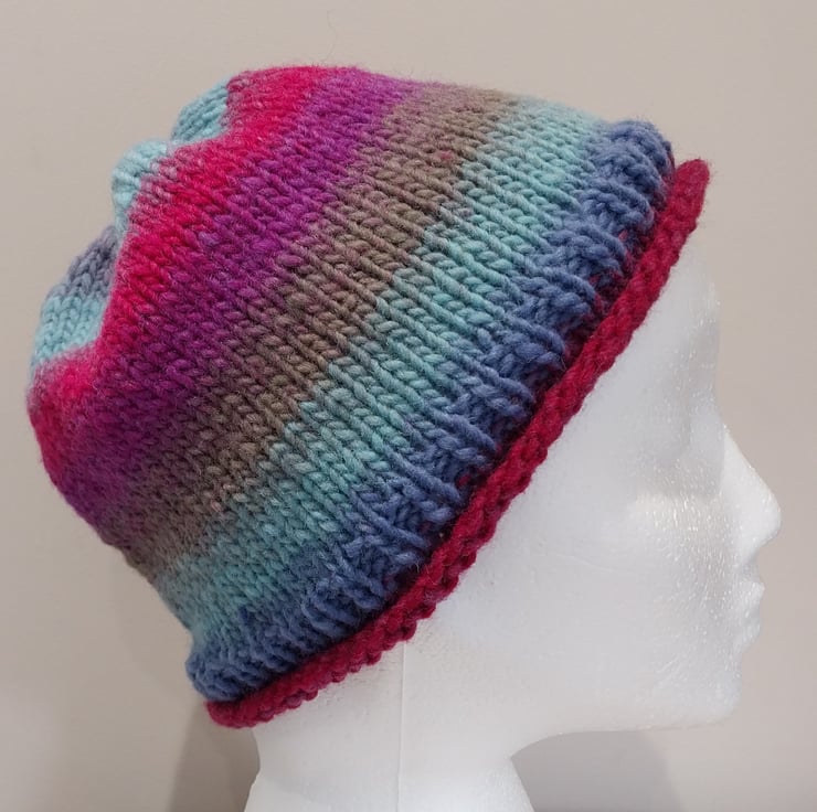 This hat design incorporates a ribbed band just up from the roll edge to give a little structure and to help keep it in place.