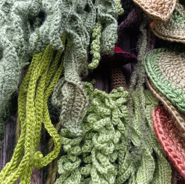My wreaths are inspired by walks through our local woodlands. Looking at the fungi and vegetation found along the banks of the stream and on fallen trees.